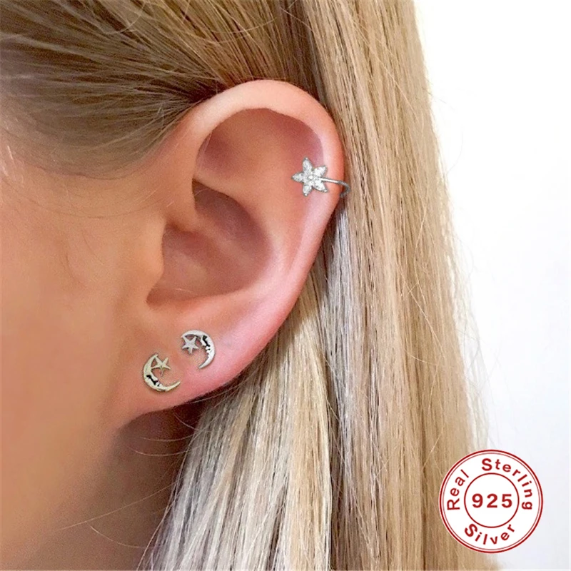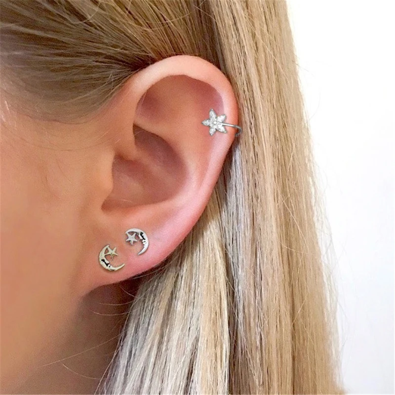 Милые крошечные геометрические серьги-гвоздики с Луной и звездой дл...