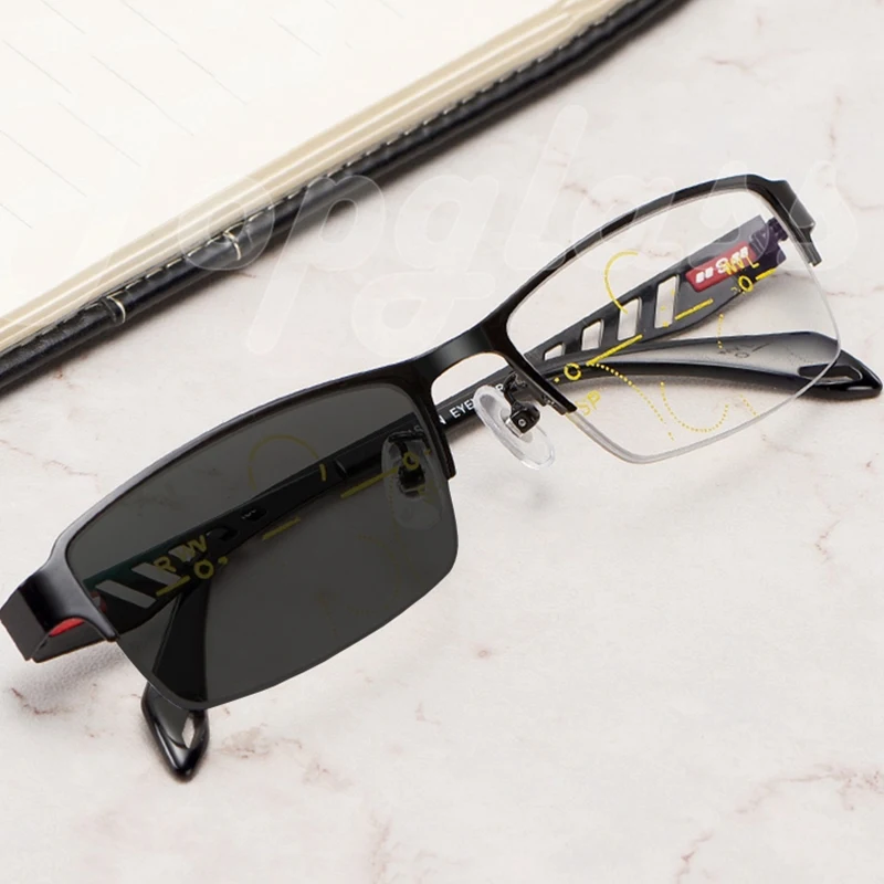 Прогрессивные многофокальные очки для чтения, фотохромные мужские высококачественные пресбиопические очки с защитой от синего света, увеличительные металлические Полуободковые очки