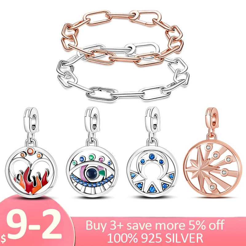 Подвеска-медальон из серебряных лучей жизни серии Me, Шарм глаза и Луна, подходят для браслета Brand Me, ювелирные изделия, подарок своими руками