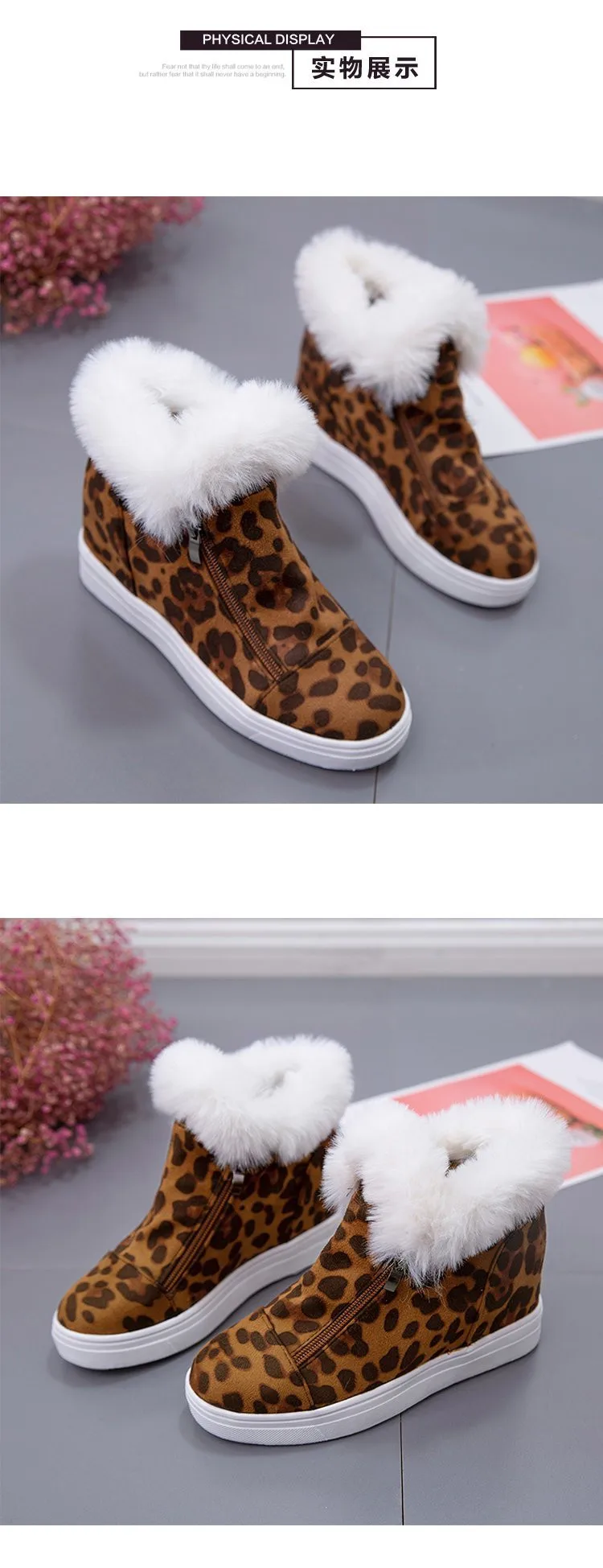 Зимние ботинки с леопардовым принтом, женская обувь большого размера, женская обувь, теплые плюшевые меховые ботинки, короткие женские ботильоны, модные ботинки