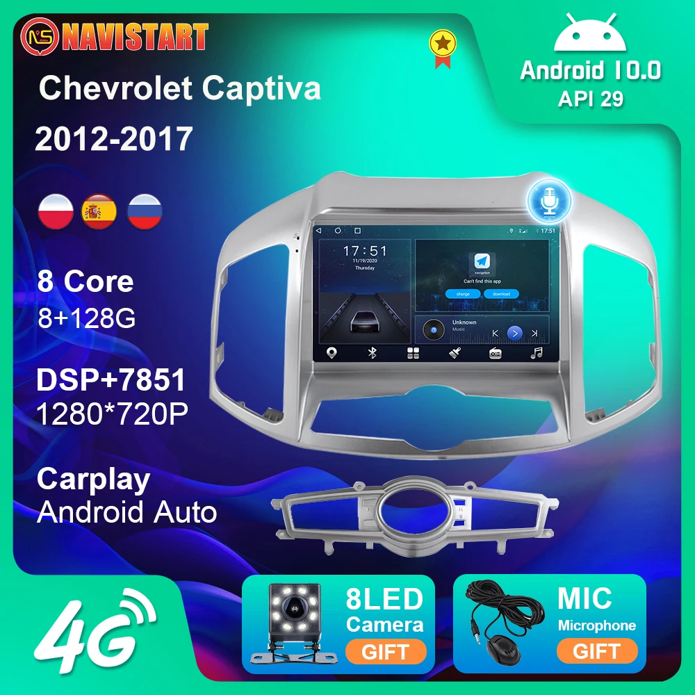 Автомобильный мультимедийный плеер 2DIN Android 10 для Chevrolet Captiva 2012-2017, автомобильное радио 4G WIFI BT CarPlay, GPS-навигация без DVD-плеера