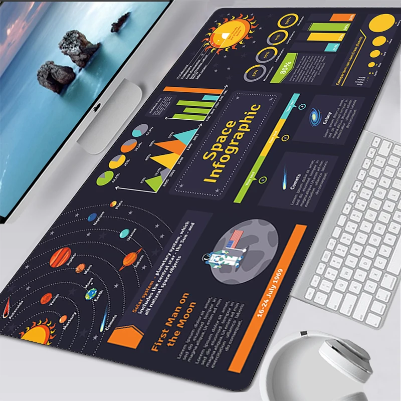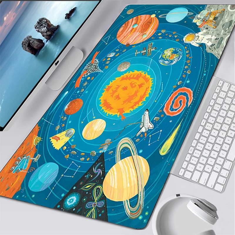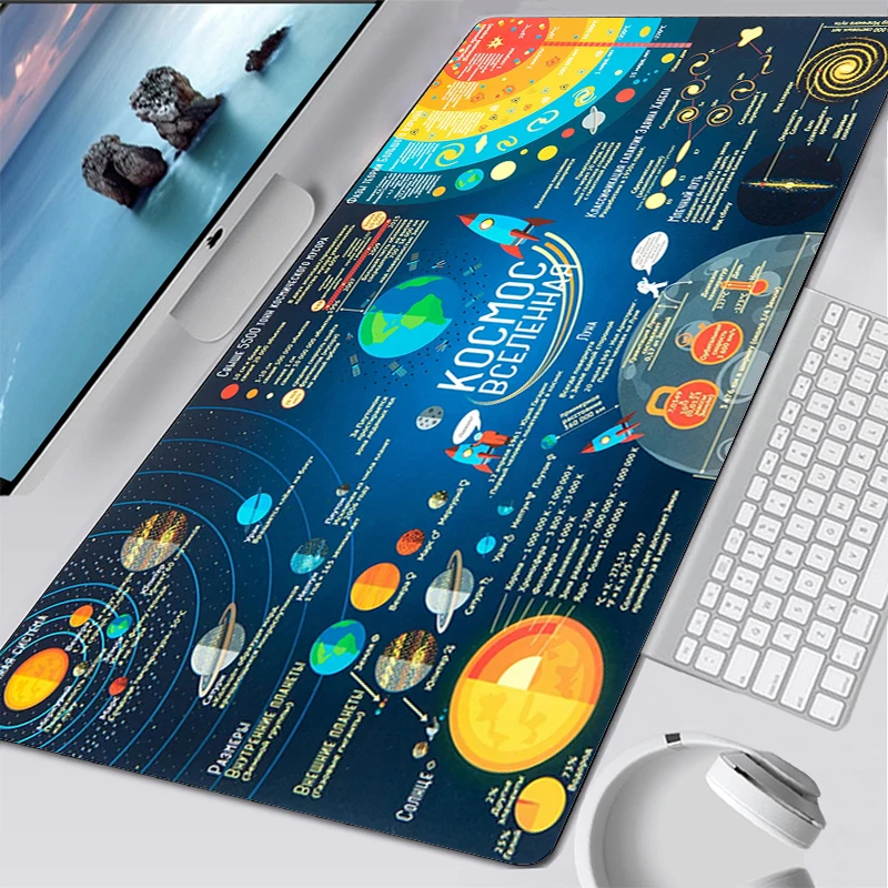 Коврик для компьютерной мыши, 900x400 мм, с солнечной системой