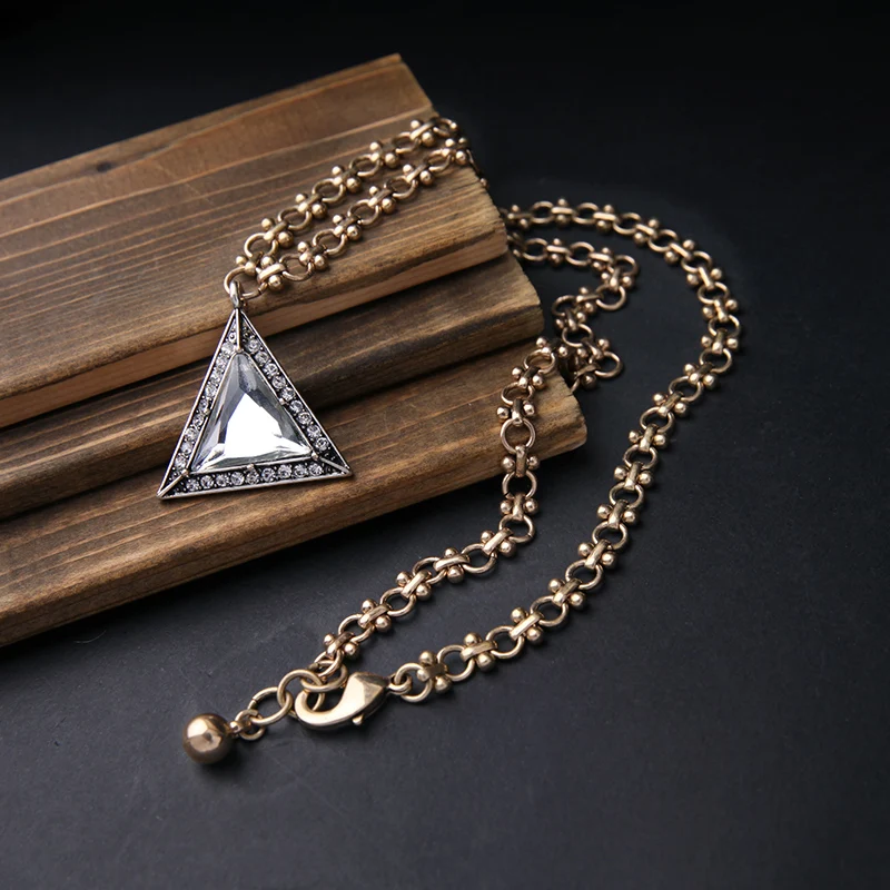 Ожерелье с подвеской из прозрачной смолы женское, винтажная специальная цепочка с треугольным кулоном, модный чокер золотого цвета, ювелирное изделие с фабрики