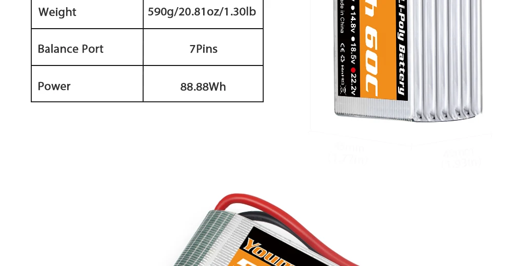 Беру в этом магазине периодически аккумы HRB, с ними все ок. Решил попробовать Youme. Пришла быстро, все ок. Будем проверять эту батку. По габаритам и массе чуть чуть больше HRB 6S 4000mAh