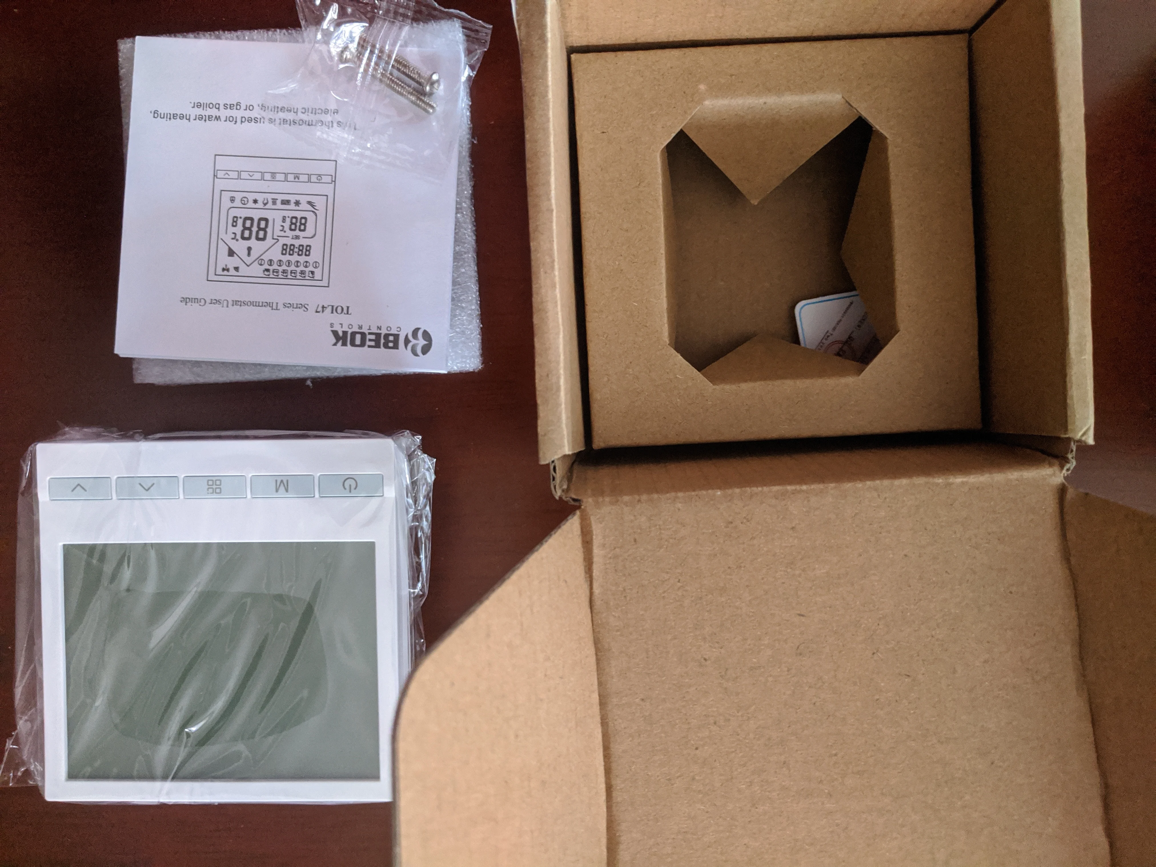 Термостат * 1Руководство пользователя-1 штВинты-2(Не включает внешний датчик пола), пожалуйста, купите его в магазине, если он вам нужен)