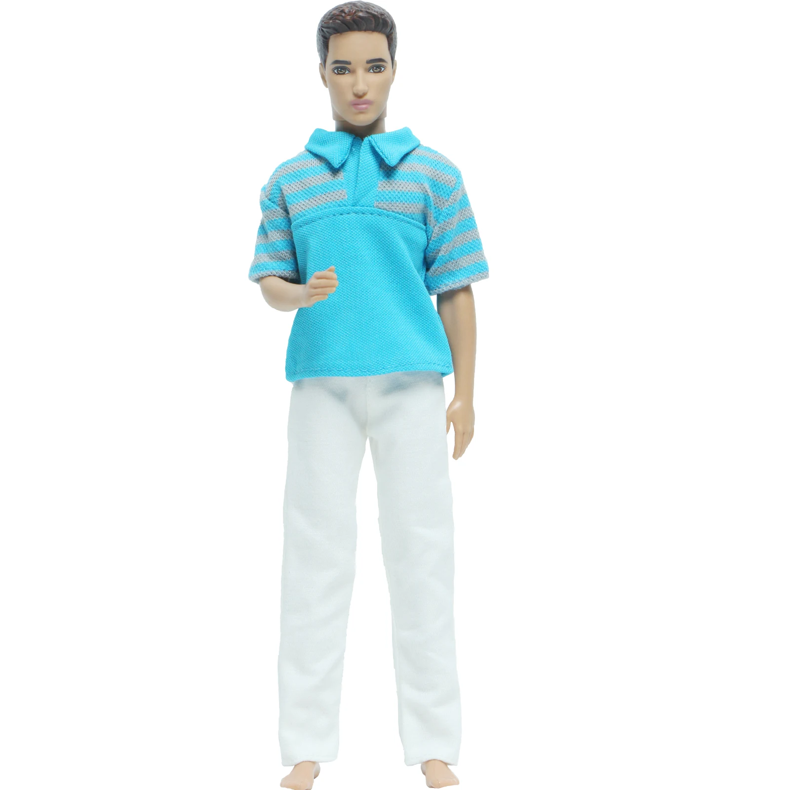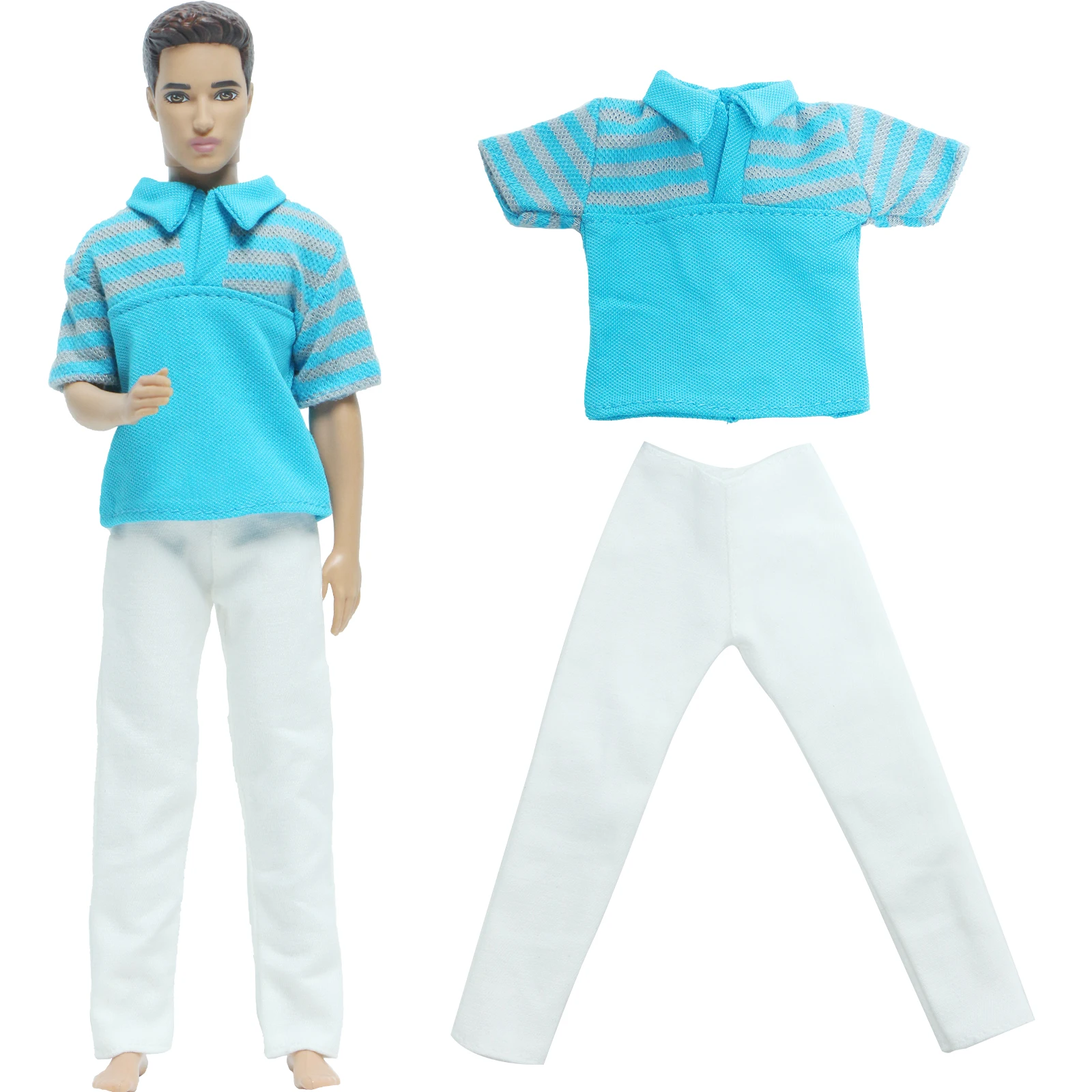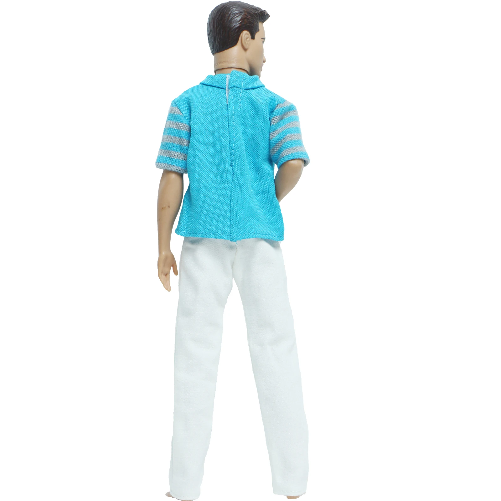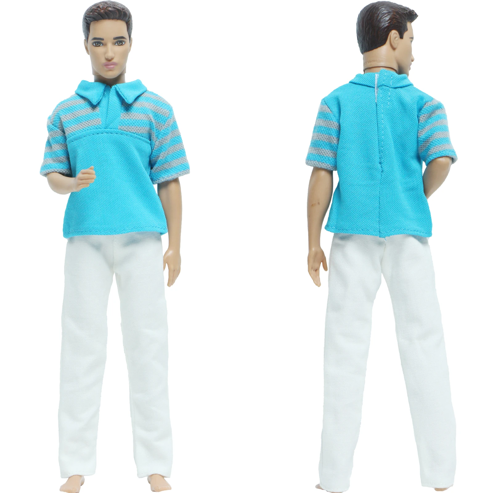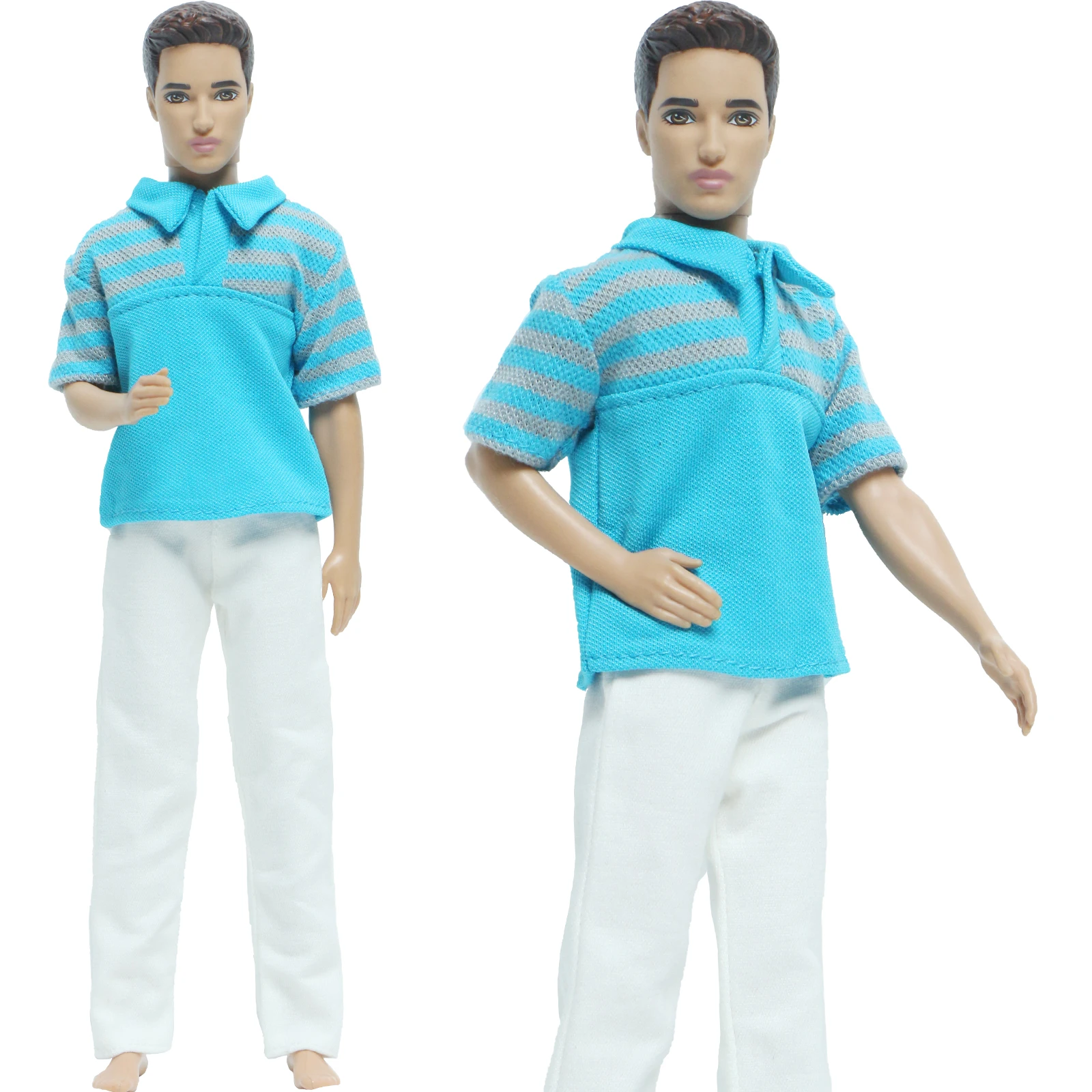 Один комплект BJDBUS, Мужская одежда, голубой воротник, футболка, белые брюки, повседневная одежда, крутая Спортивная Одежда для куклы Кена, для маленьких мальчиков, игрушки сделай сам