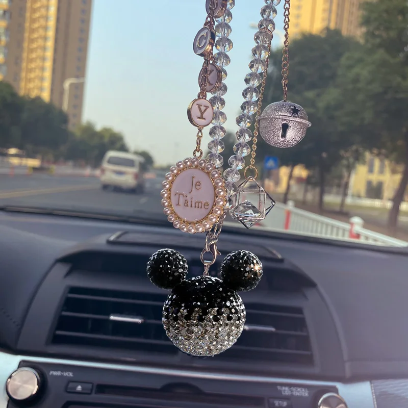 Украшения для автомобиля, подвеска в виде хрустального шара с блестящими стразами, креативное милое мультяшное украшение с головой Микки Мауса, Подвесные Украшения для автомобильного Зеркала