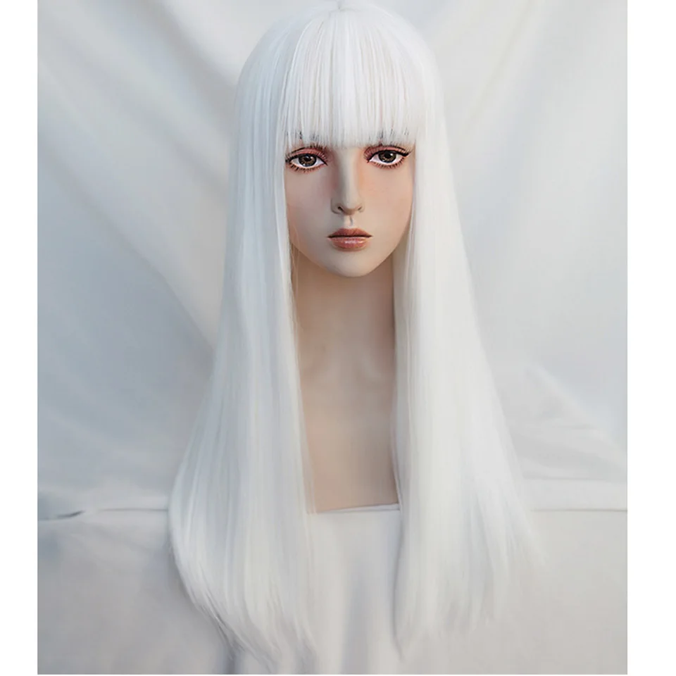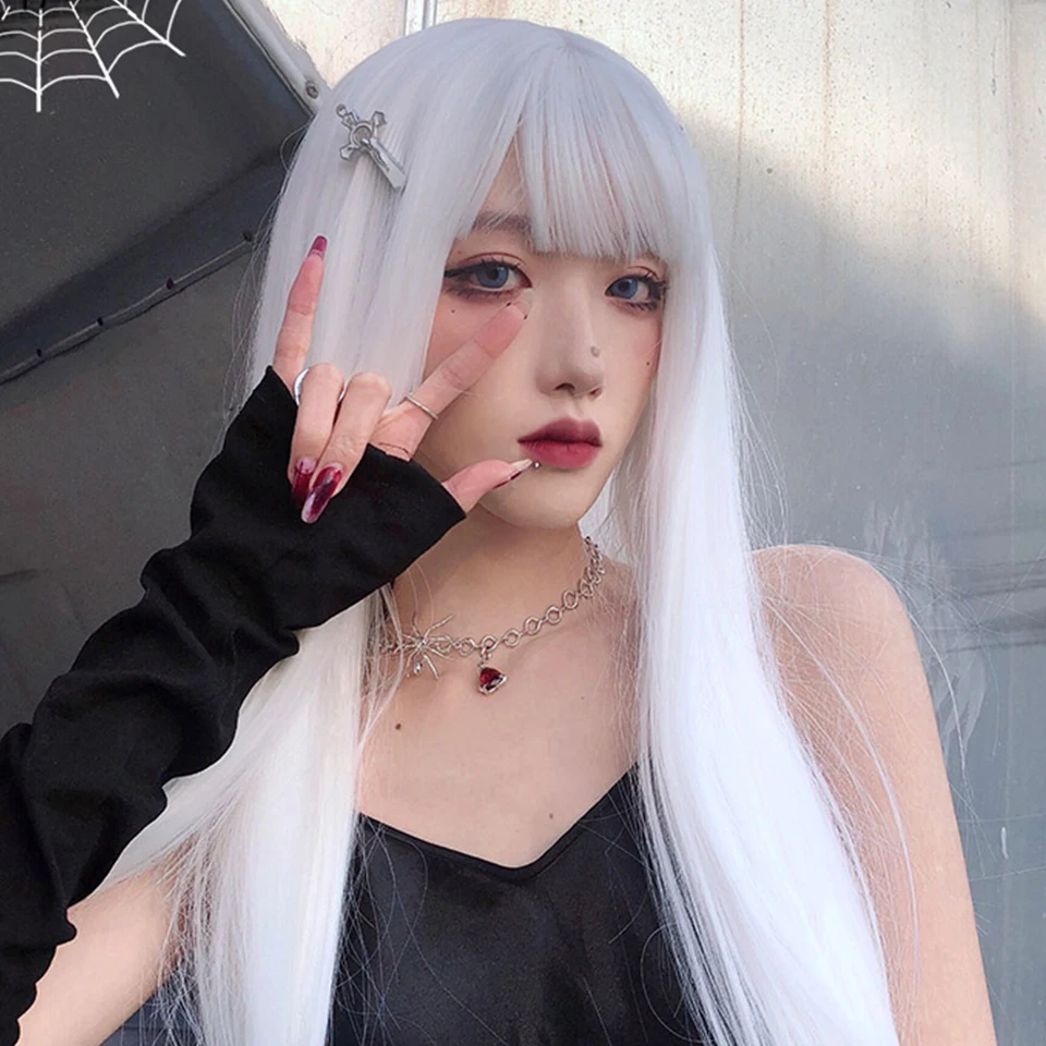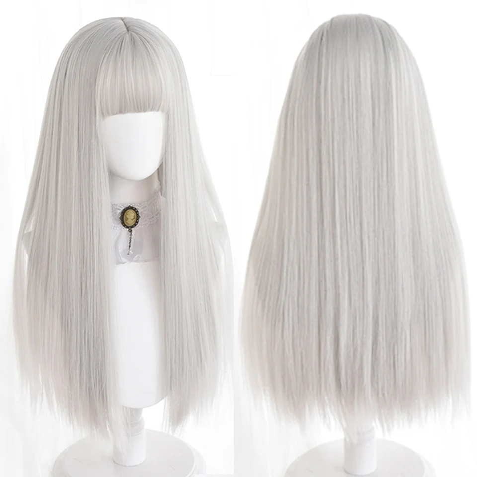Синтетический парик HOUYAN с длинными прямыми волосами, серебристые, белые, черные челки, парик для косплея, парик Лолиты, термостойкий парик для вечеринки