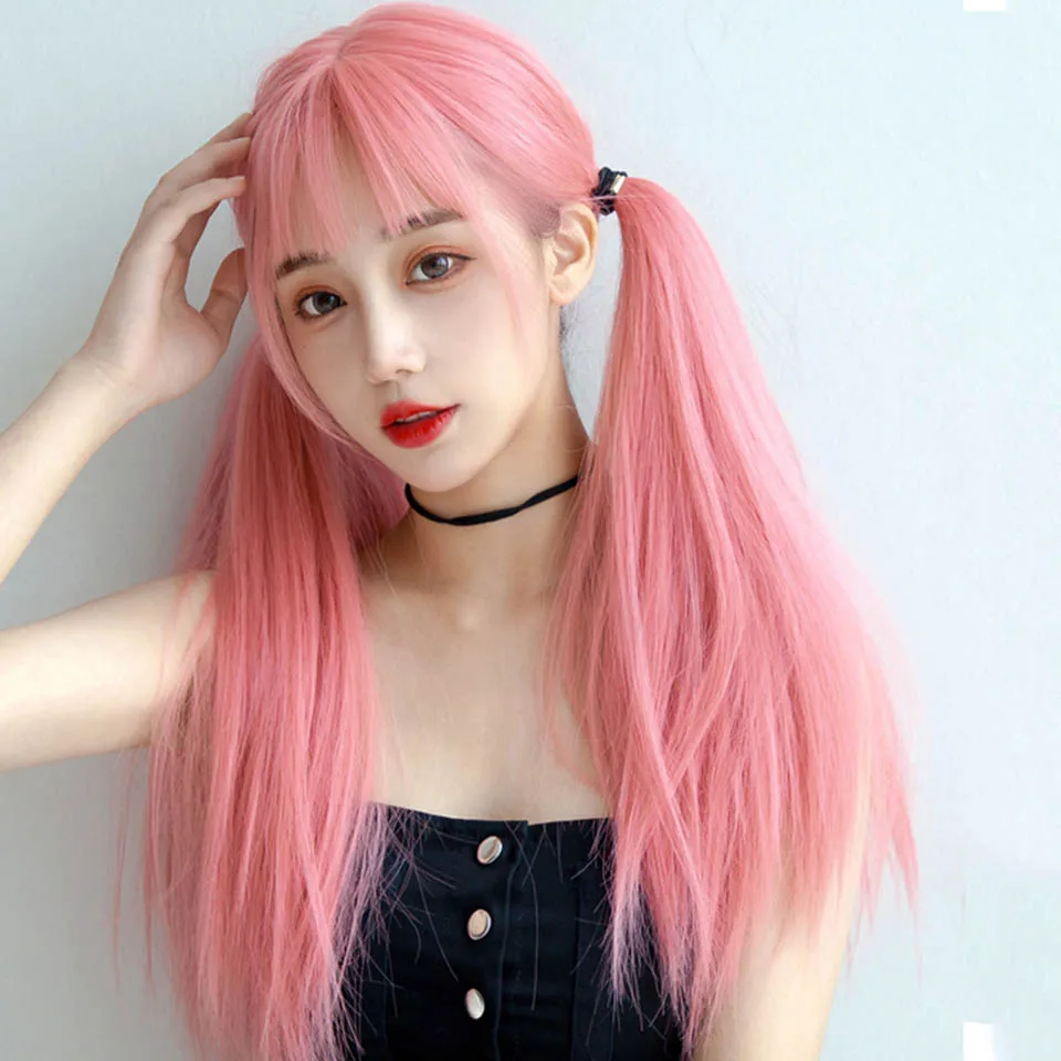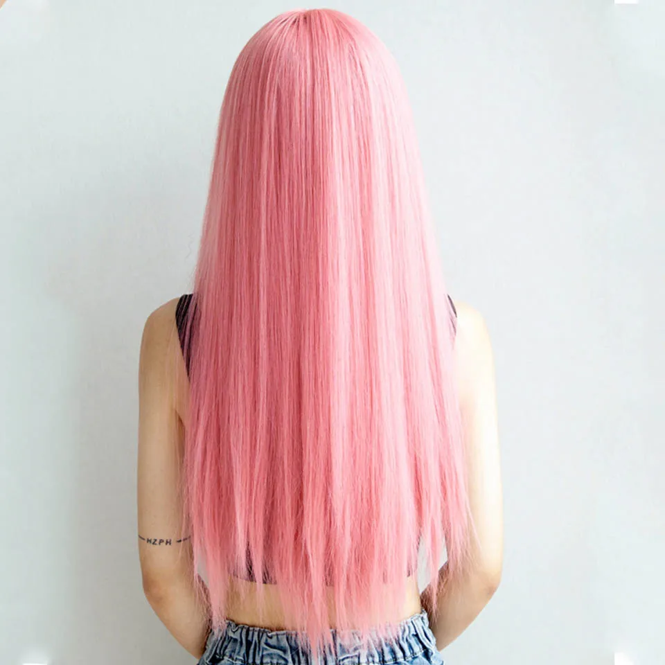 Парик HOUYAN розовые длинные прямые волосы с челкой женский натурал...