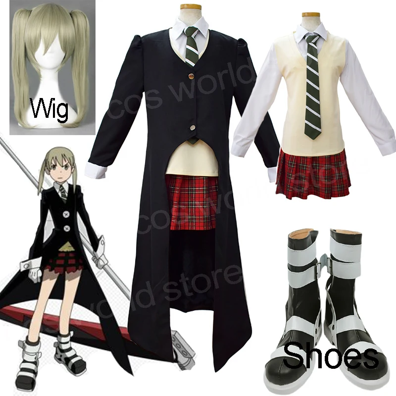 Карнавальный костюм для косплея Soul Eater Maka Albarn, униформа для Хэллоуина, карнавальные вечерние костюмы с юбкой Maka Albarn, обувь с париками