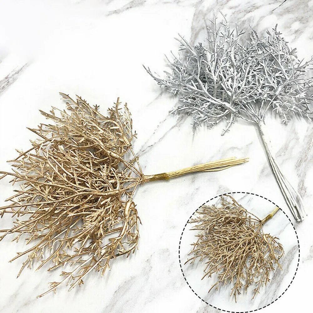 10 шт.комплект, искусственные цветы, листья сосны, ветки, трава, Рождественский венок, декор для вечеринки, дня рождения, украшение для дома на Рождество