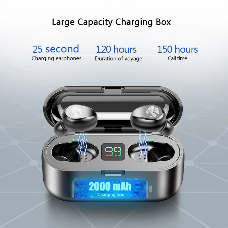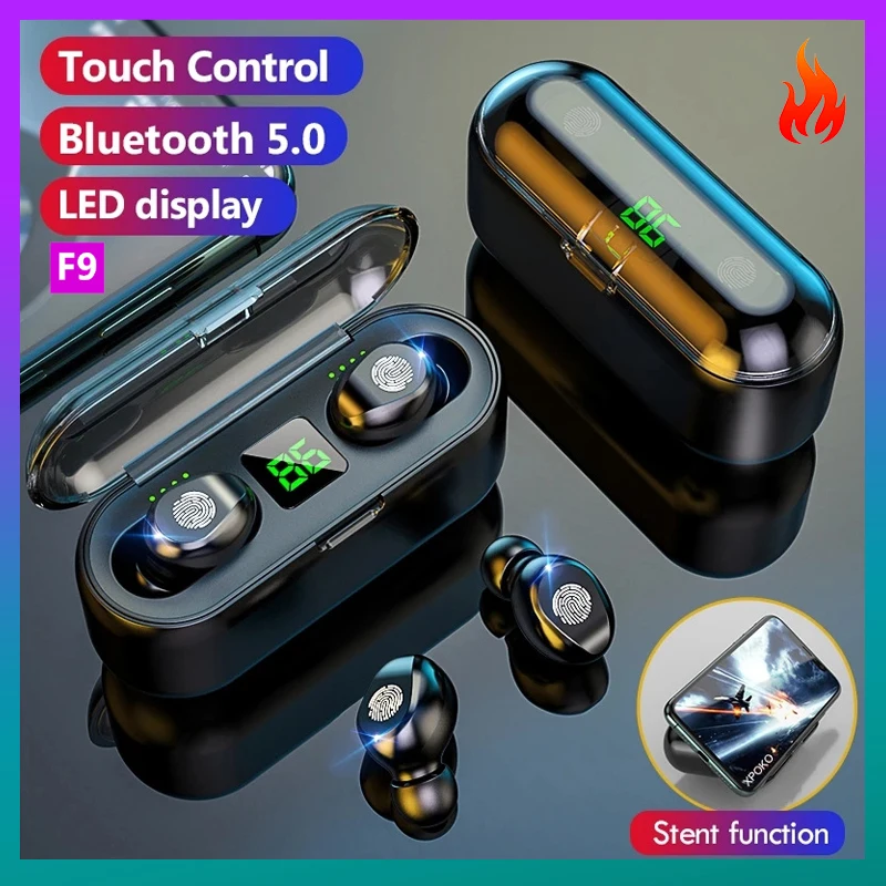 1x наушники F9 TWS Bluetooth (двойное ухо)1x зарядный чехол1x USB кабель для зарядки1x Руководство пользователя3x чашки для наушников (размер S,M,L)