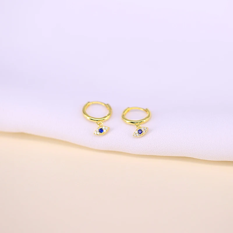 Женские серебряные серьги-кольца с цирконом, золотистого цвета
