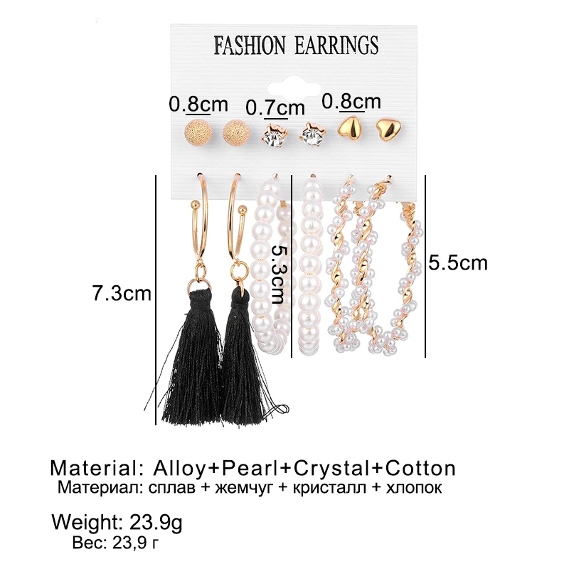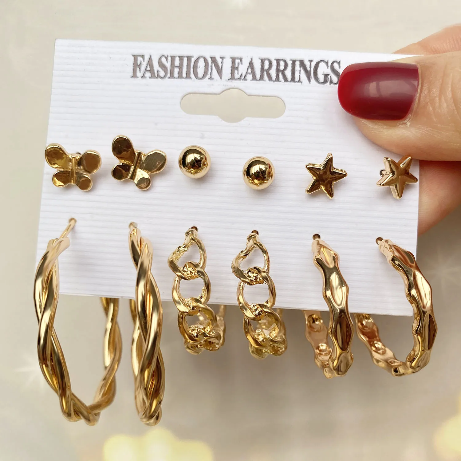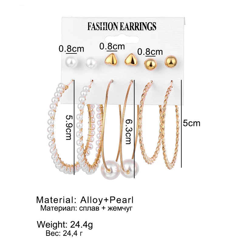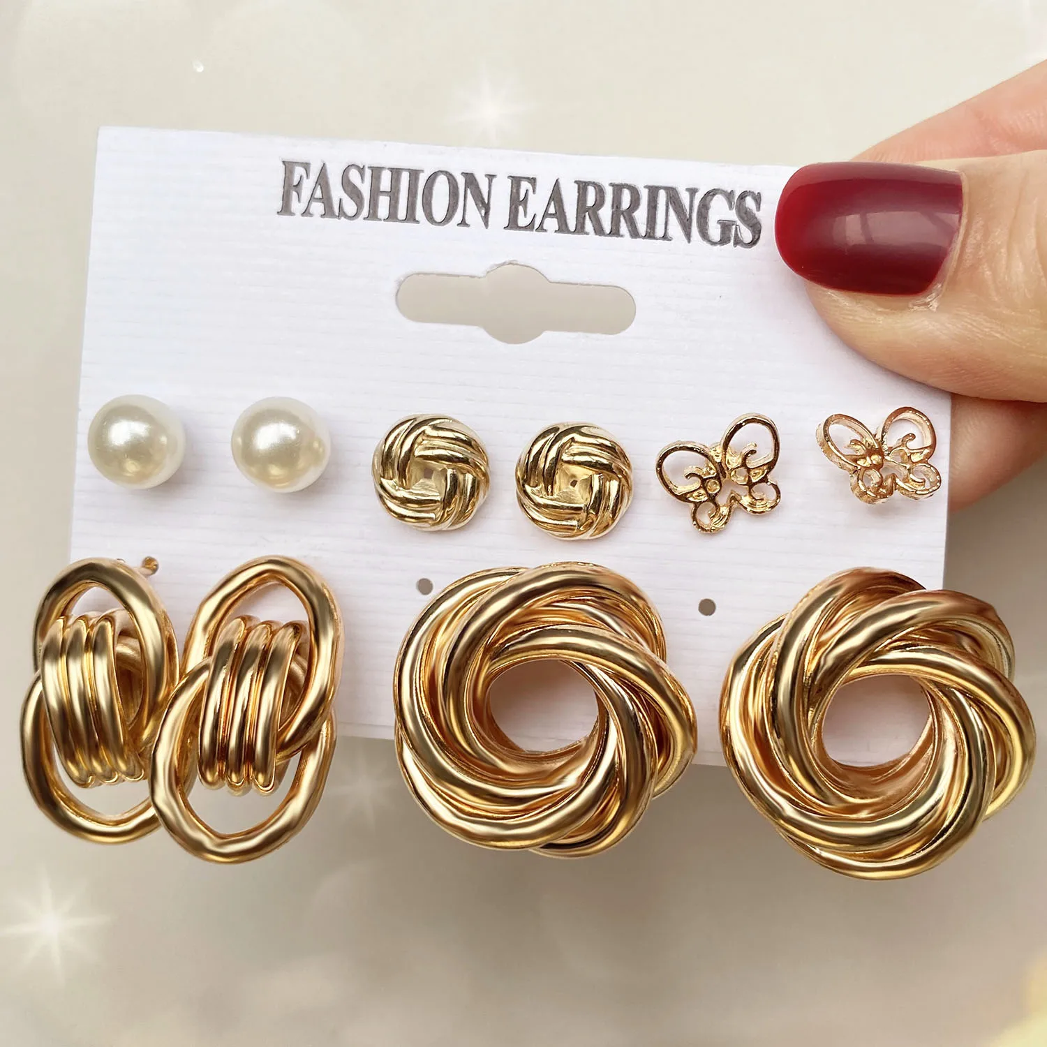Модные серьги FNIO 2021 в форме капли с большим жемчугом, модные золотые геометрические серьги-кольца, набор серег, ювелирные изделия