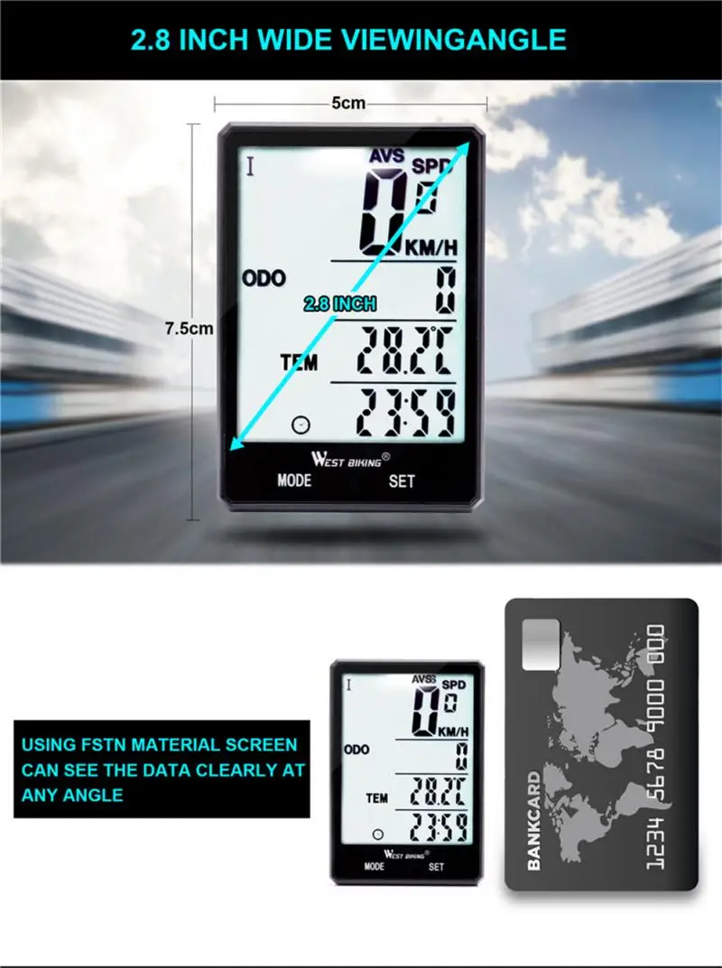 Велосипедный компьютер 2,8 дюйма, беспроводной Велосипедный компьютер, комплект фасветильник, Водонепроницаемый Спидометр, одометр, велосипедный секундомер, датчики