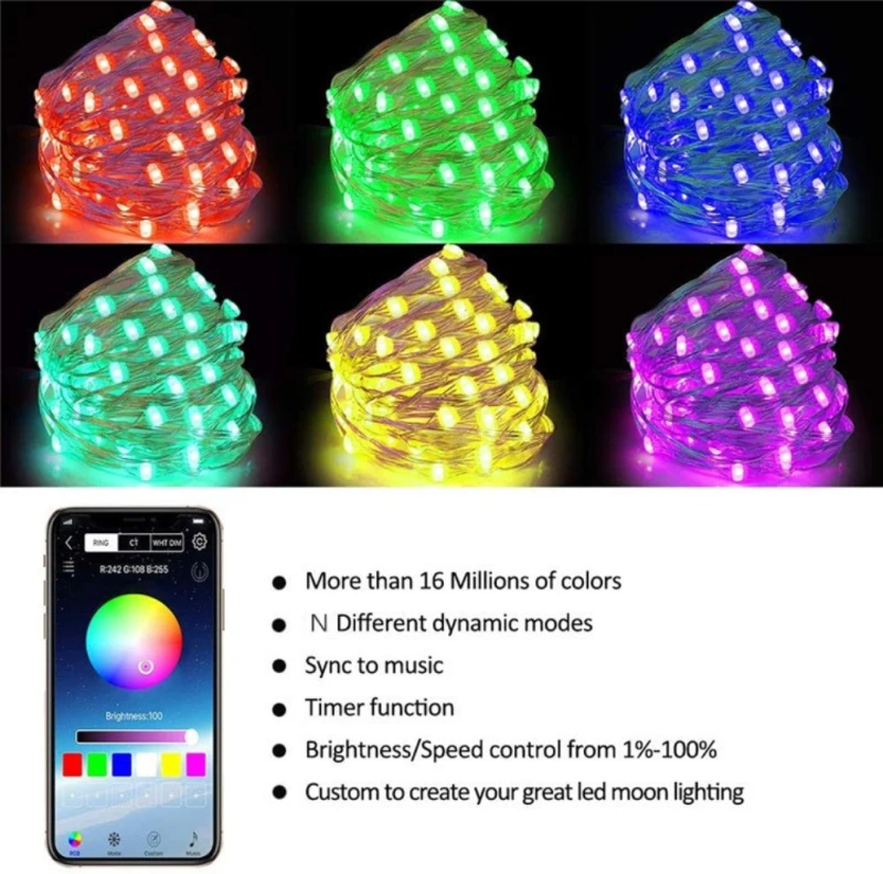 Светодиодная гирлянда на рождественскую елку, Led лампа с дистанционным управлением через приложение, совместимая с Bluetooth, Рождественский Декор для дома, 30 м
