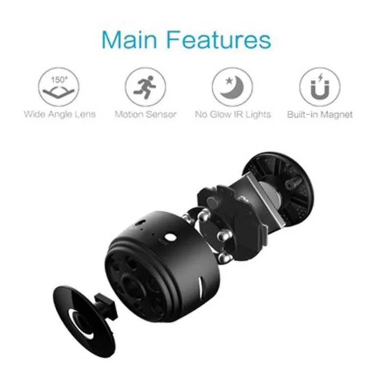 -Эта маленькая ванная комната имеет встроенный Магнит, может хорошо работать с любым железным материалом, легко помещается в любом месте. Эта маленькая камера с жестким зарядным кабелем и базой, при зарядке во время записи вы можете вручную повернуть угол записи на 360 градусов.