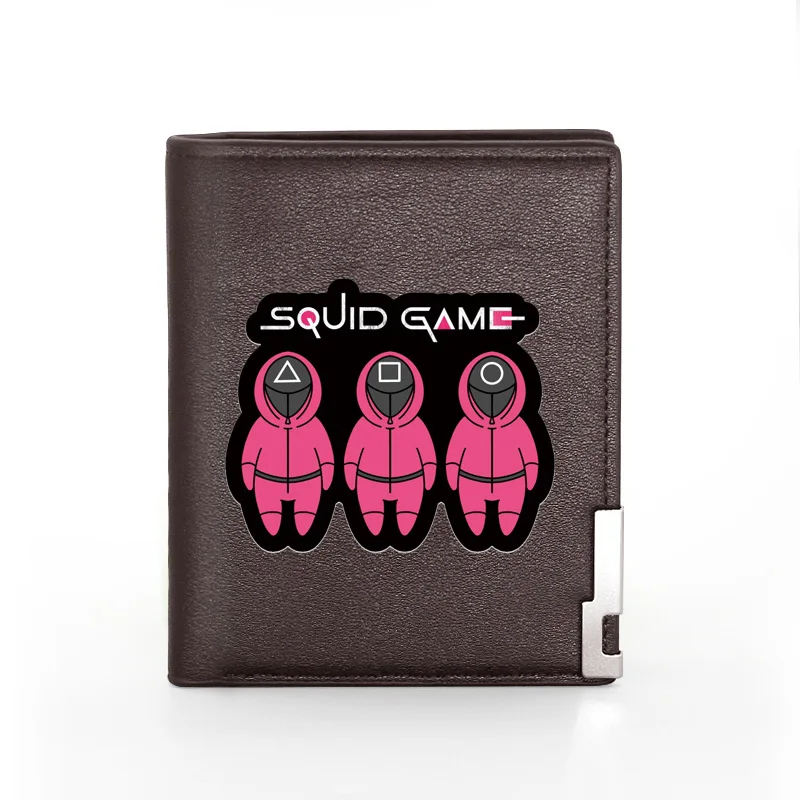 Мужской кошелек, кожаный кошелек с принтом в виде игры кальмара, двойной складной тонкий держатель для кредитных картудостоверения личности, вставной кошелек для денег, мужской карман, Короткие Кошельки