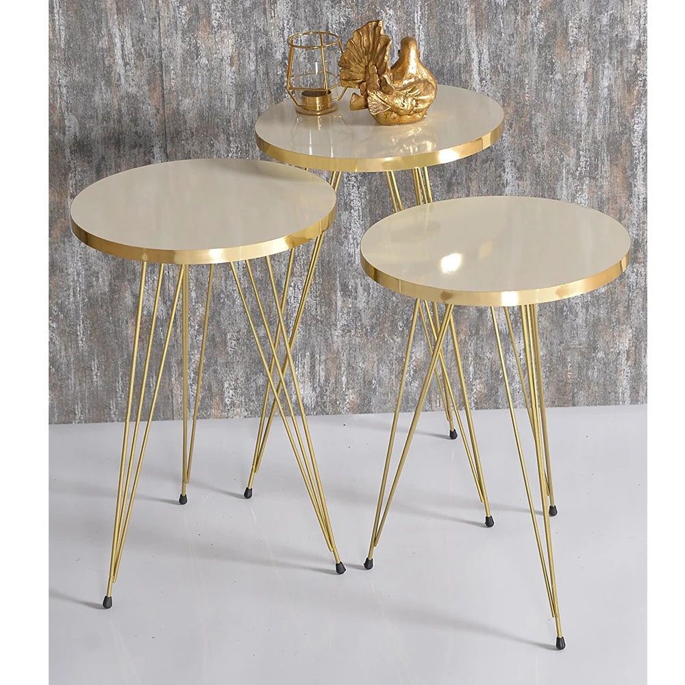 Журнальный столик Золотая проволокаЖурнальный столик весь верхний диаметр: 34 смМаленькая Высота: 47 смСредняя высота: 51 смБольшой рост: 55 смМраморный материал ДСП.Его края покрыты специальной золотой ПВХ-лентой 1-го класса.Используемый материал имеет сертификаты TSE, Европейского союза EN, ISO 9001 и FSC.Ноги 1-го качества металла.Пакеты включают все необходимые винты и аксессуары для легкой установки.Установка продукта очень проста. Вы можете легко установить его с помощью простых ручных инструментов.Для быстрой и безошибочной установки есть часть, совместимая с схемой установки на части.Быстрая доставкаСделано в Турции