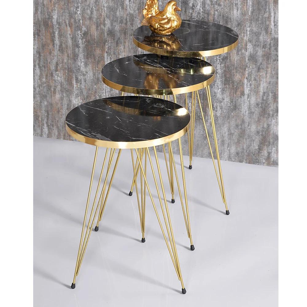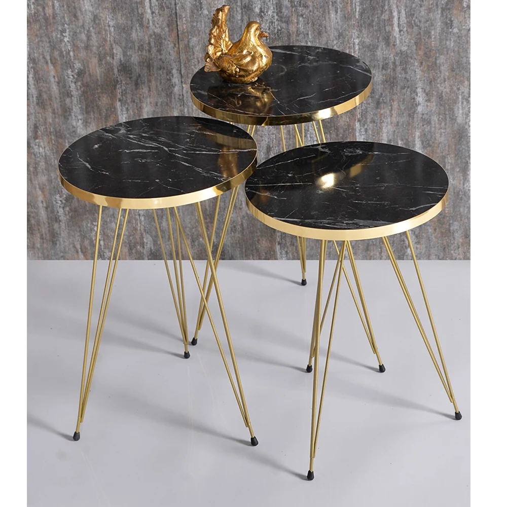 Роскошный дизайн 3 шт., кофейный столик с золотым мраморным рисунком, прикроватный столик, боковой журнал, кофейный столик с мраморным рисунком
