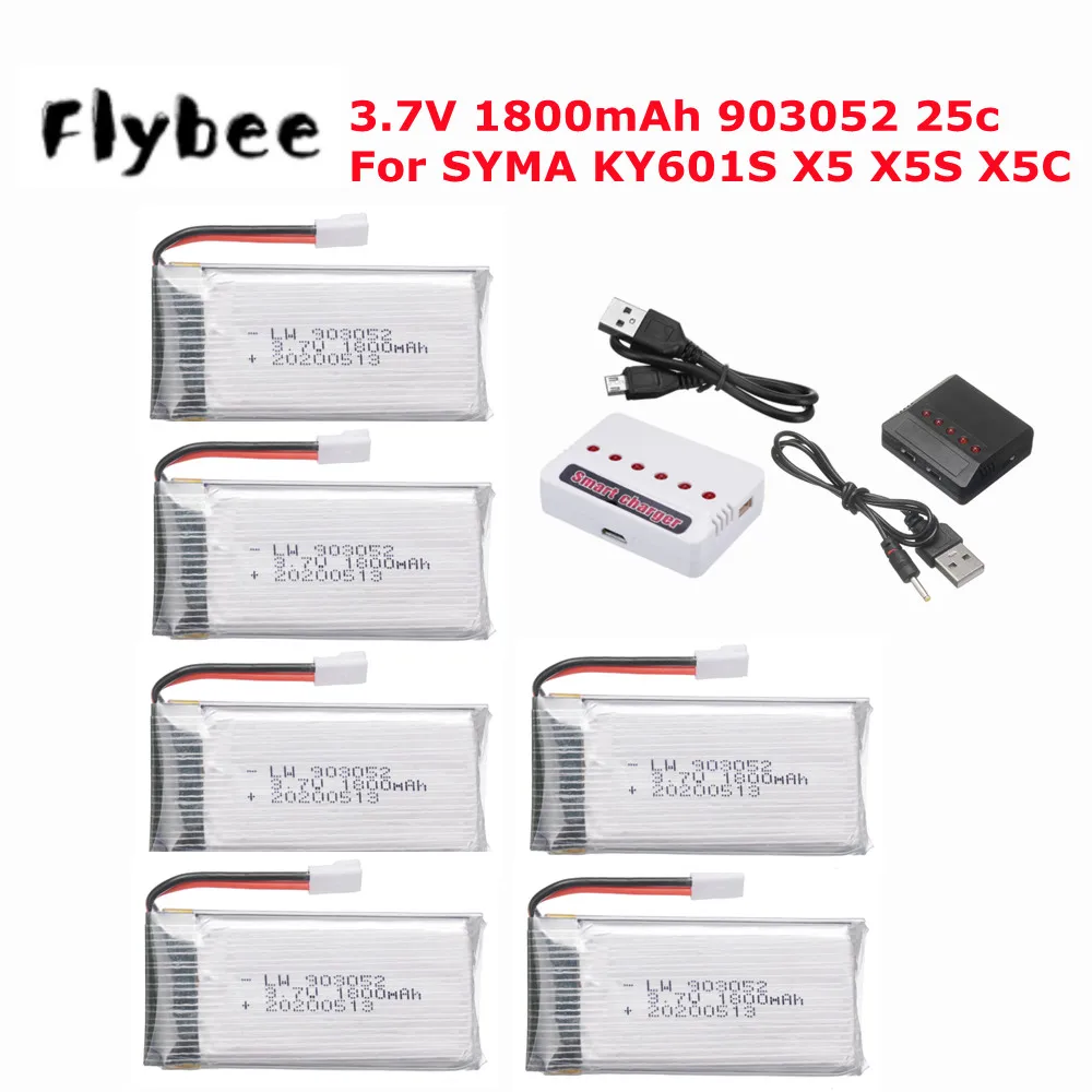 Литий-полимерный аккумулятор 3,7 в 1800 мАч и зарядное устройство для KY601S SYMA X5 X5S X5C X5SC X5SH X5SW M18 H5P Запчасти для радиоуправляемых дронов 3,7 в 903052 25c аккумулятор