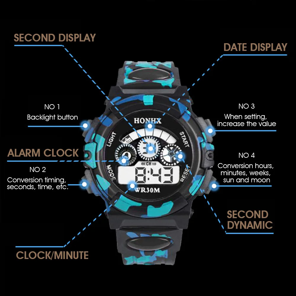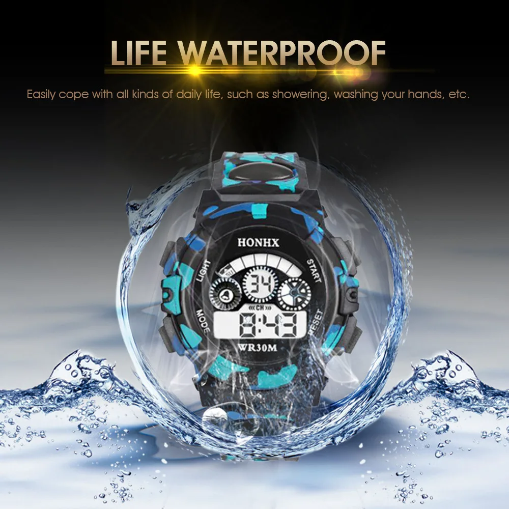Часы Наручные детские цифровые, водонепроницаемые спортивные камуфл...