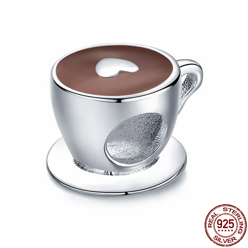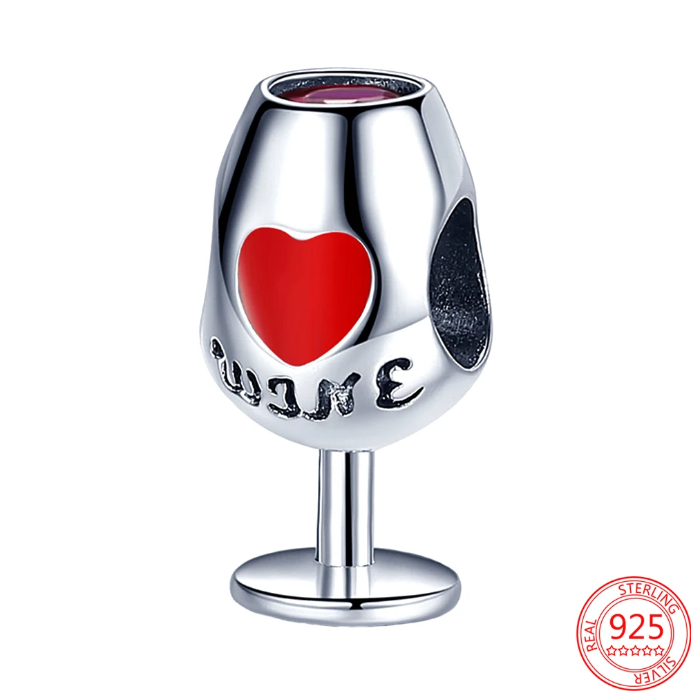 Женский браслет с бусинами в виде красного вина и кофе, из серебра 925 пробы