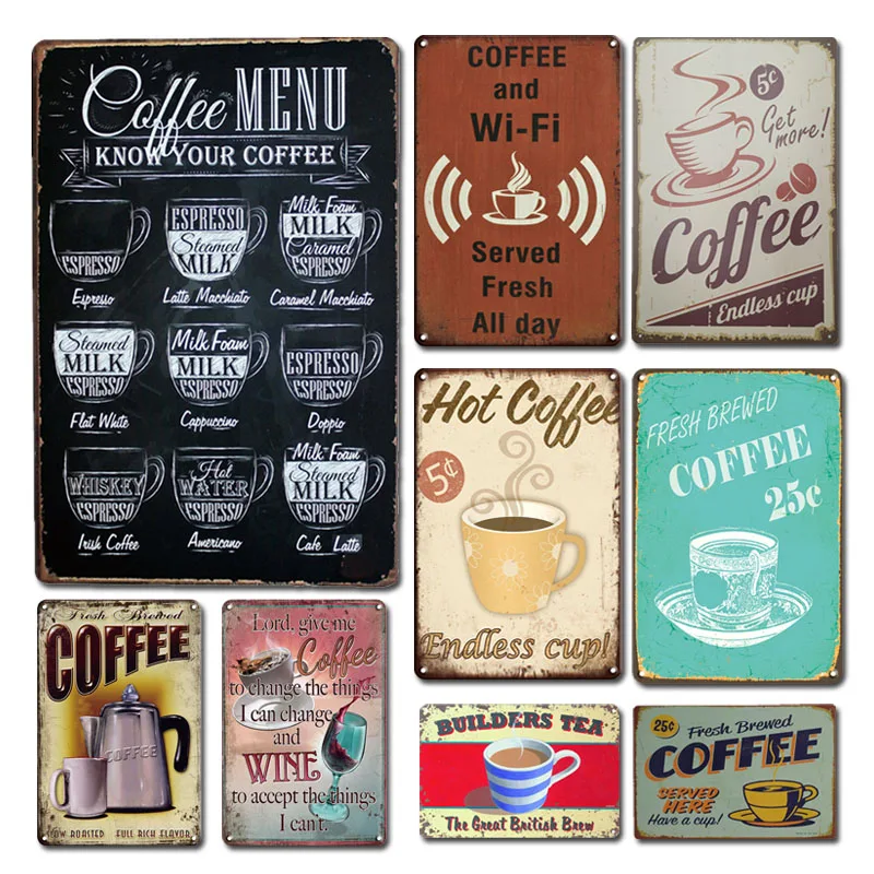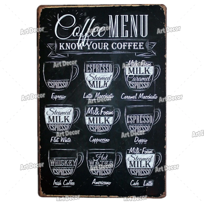Металлическая табличка в виде меню кофе, Жестяная Табличка, ретро, ресторан, кофе, бар, Настенный декор, табличка, персонализированные художественные наклейки
