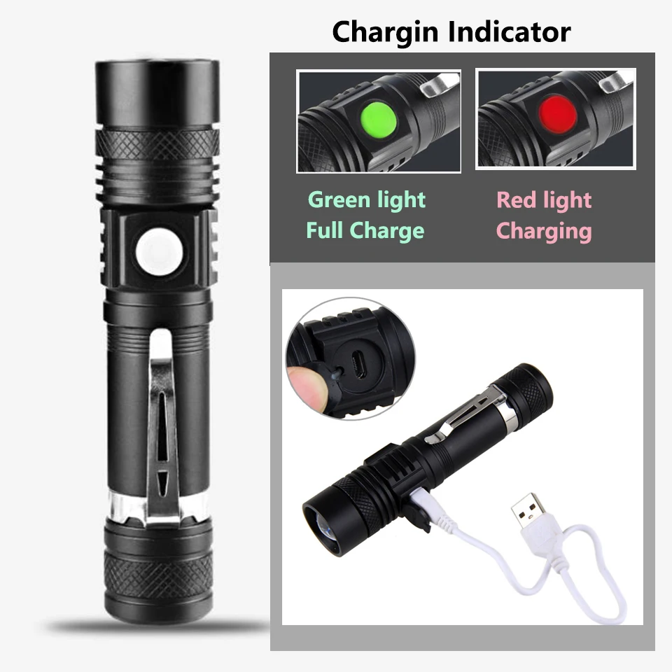 Ультраяркий светодиодный фонарик, ручная работа V6, 4 режима освещения, масштабируемый Водонепроницаемый Многофункциональный, USB зарядка, фонарь