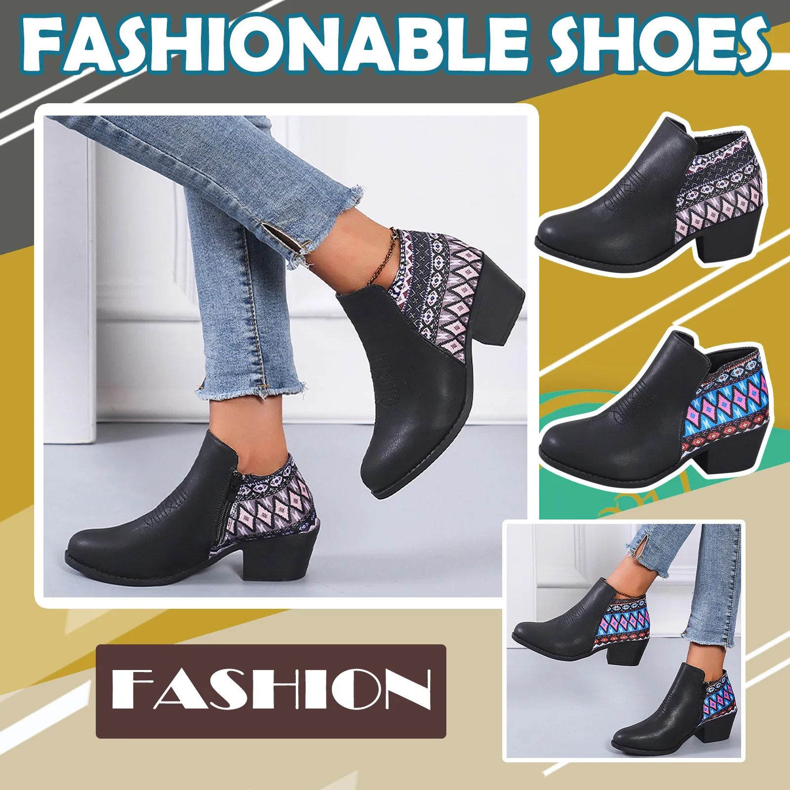 Женские ботинки в этническом стиле, Короткие плиссированные ботинки на танкетке, на толстом каблуке, модель #4, 2021