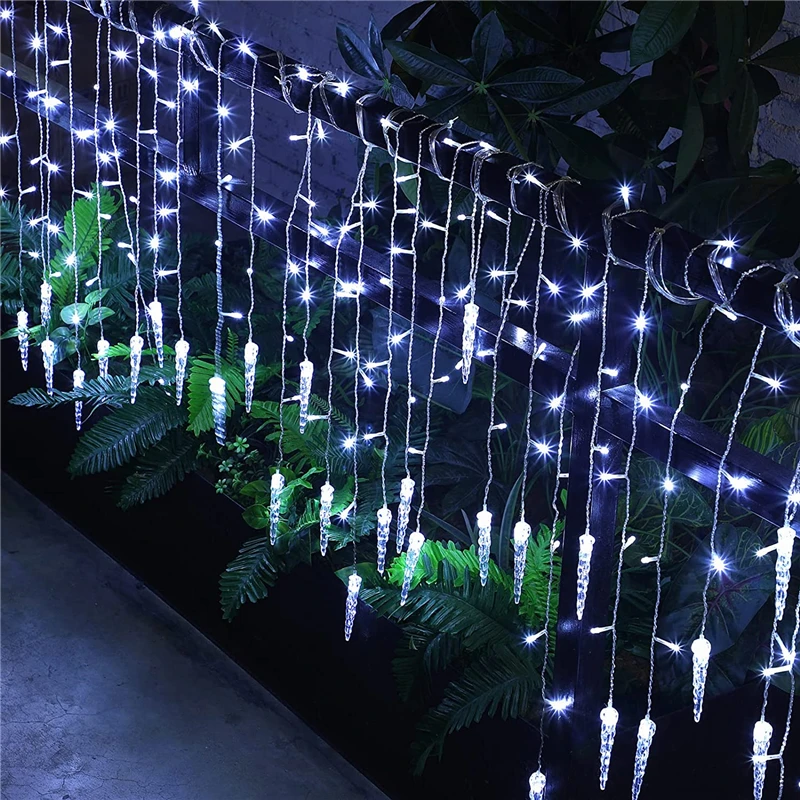 Рождественские огни, светящиеся маленькие огни в виде сосулек, Рождественское украшение для дома и улицы, шторы, светодиодная гирлянда Водопад со звездами