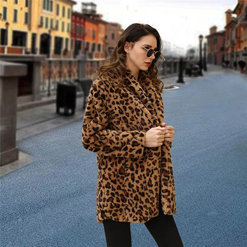 Пальто с леопардовым принтом, новинка 2021, Женское пальто из искусственного меха, роскошная зимняя теплая плюшевая куртка, модная женская верхняя одежда из искусственного меха, высокое качество