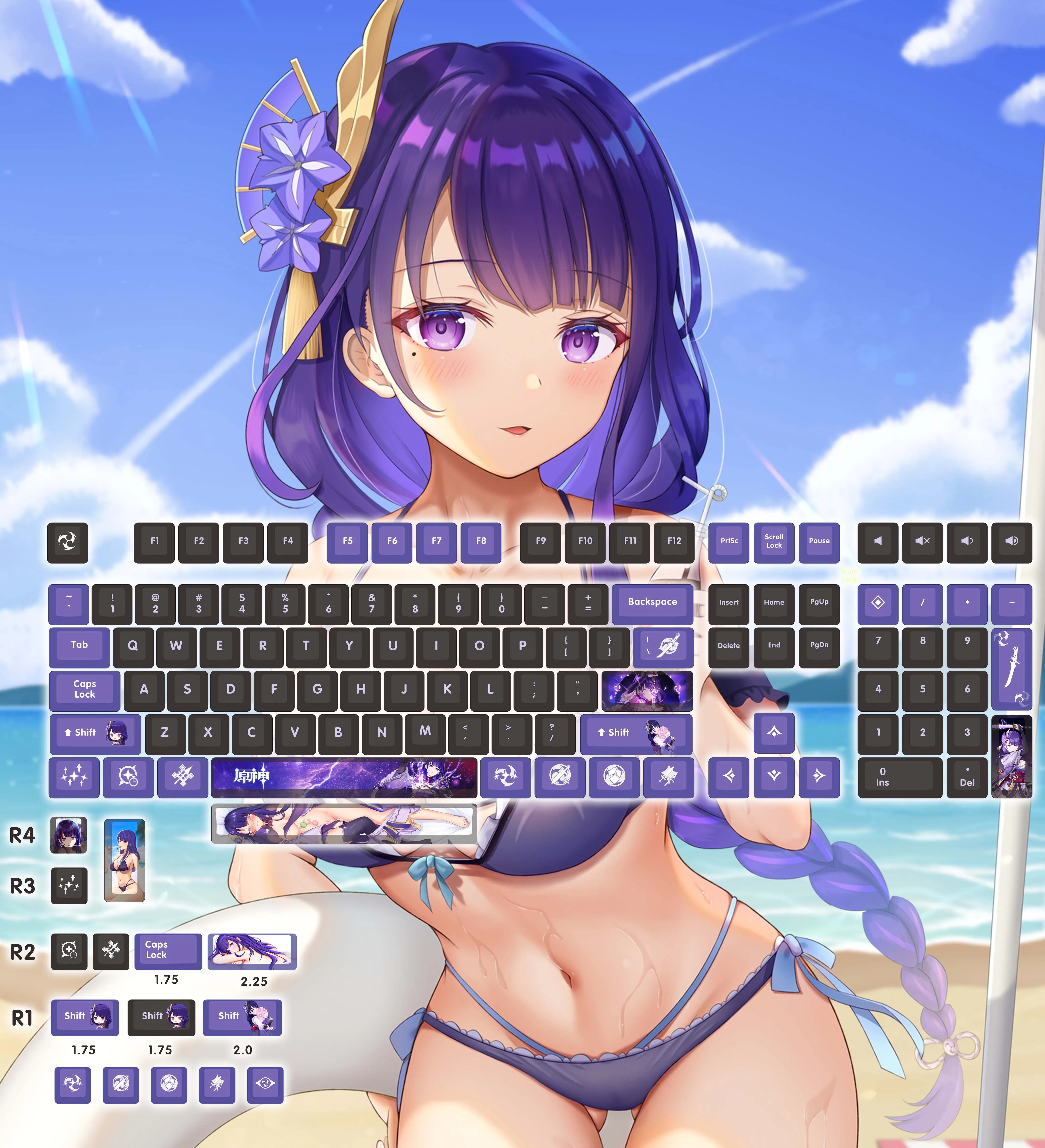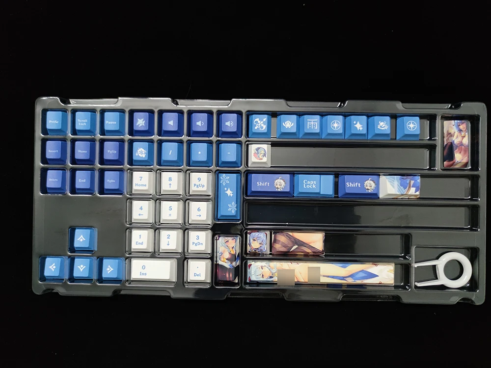 Колпачки клавиш для механической клавиатуры, PBT Genshin Impact 124 клавиш, KegingKleeGanyuSangonomiya Kokomi Game Dye Sublimation,Cherry