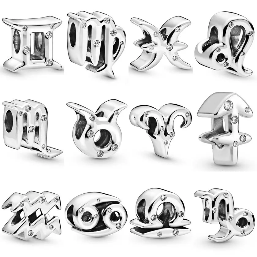 Оригинальный браслет со сверкающими двенадцатью зодиаками созвездиями Скорпион весы DIY Ювелирные изделия подходят для женского браслета Pandora