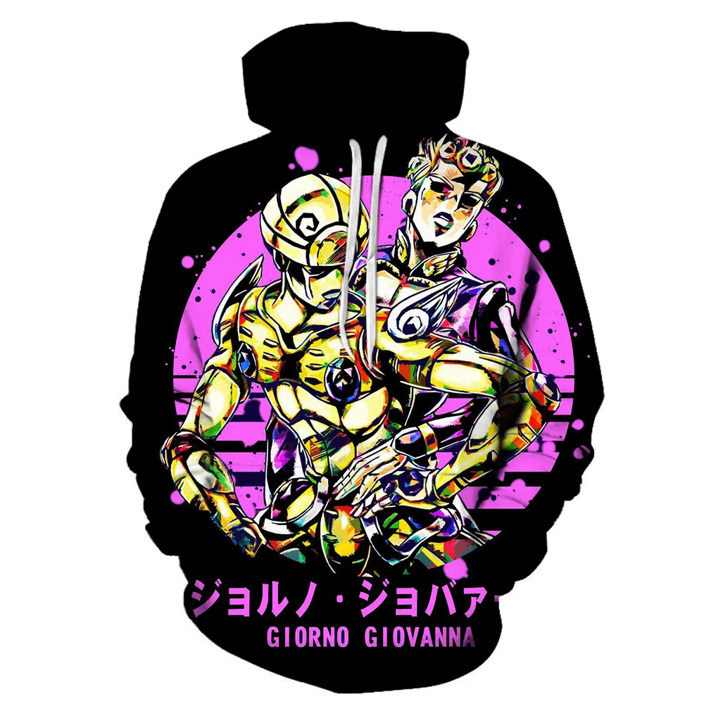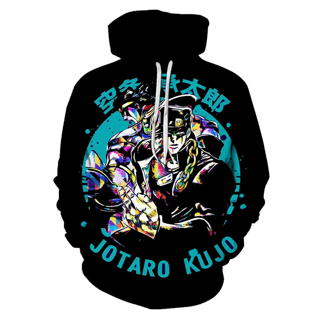 Толстовка с капюшоном для мужчин и женщин, аниме невероятные приключения Джоджо, уличная одежда с 3D принтом, свитшоты оверсайз в стиле Харадзюку, пуловер с капюшоном