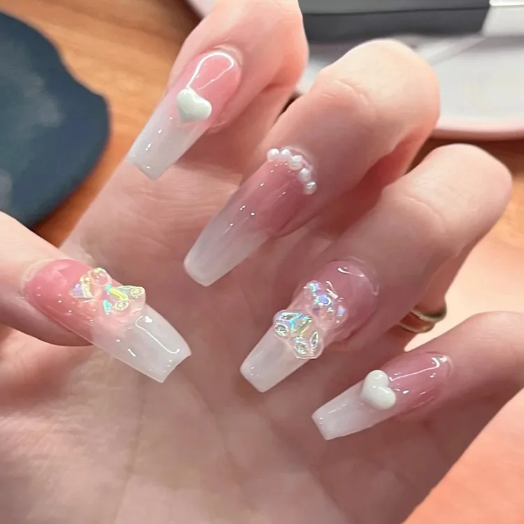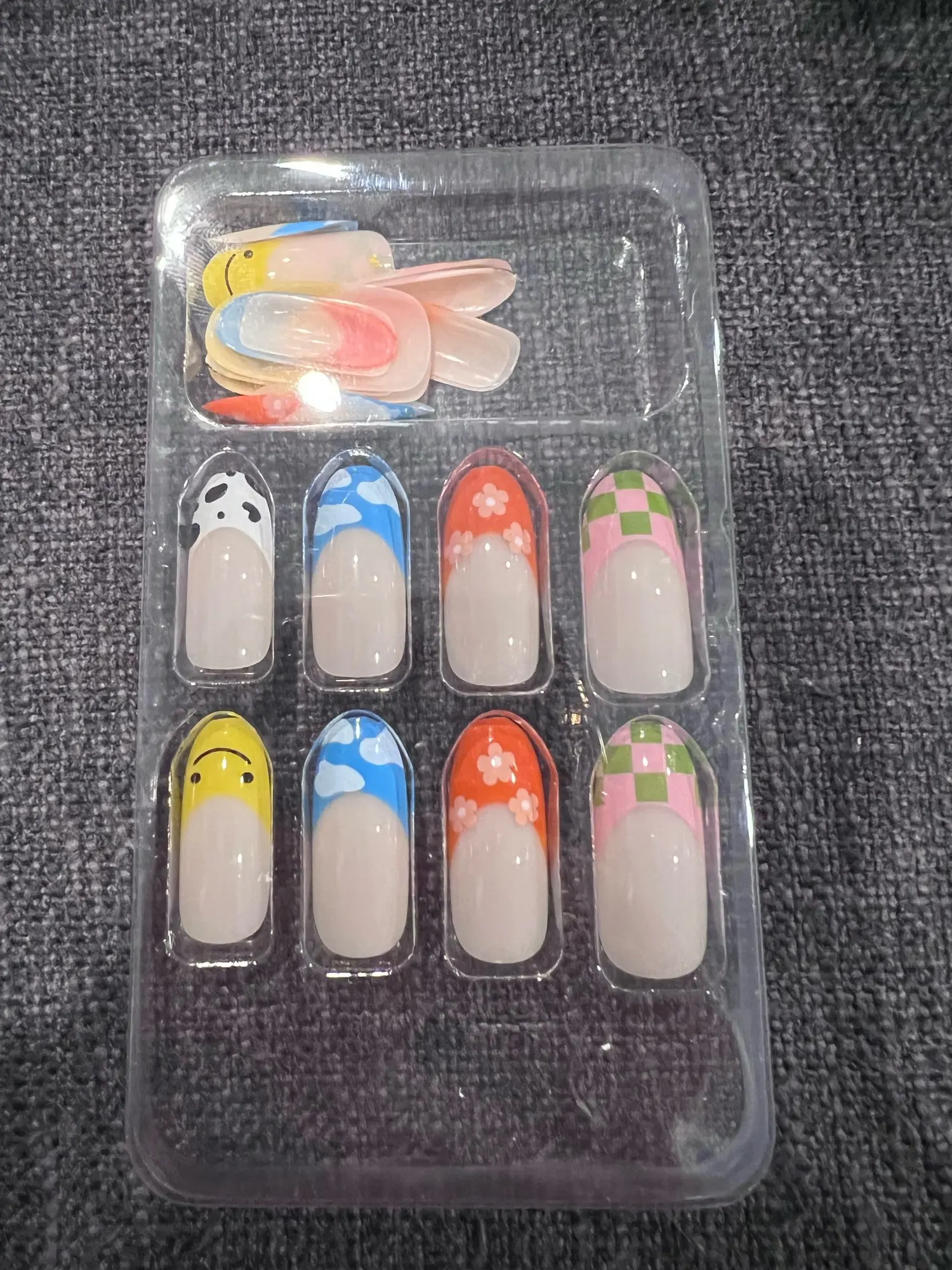 24 шт. небольшие улыбки овальные Украшенные облако молочные носимые накладные ногти короткий пресс на гвоздь гроб съемные французские накладные ногти Типсы