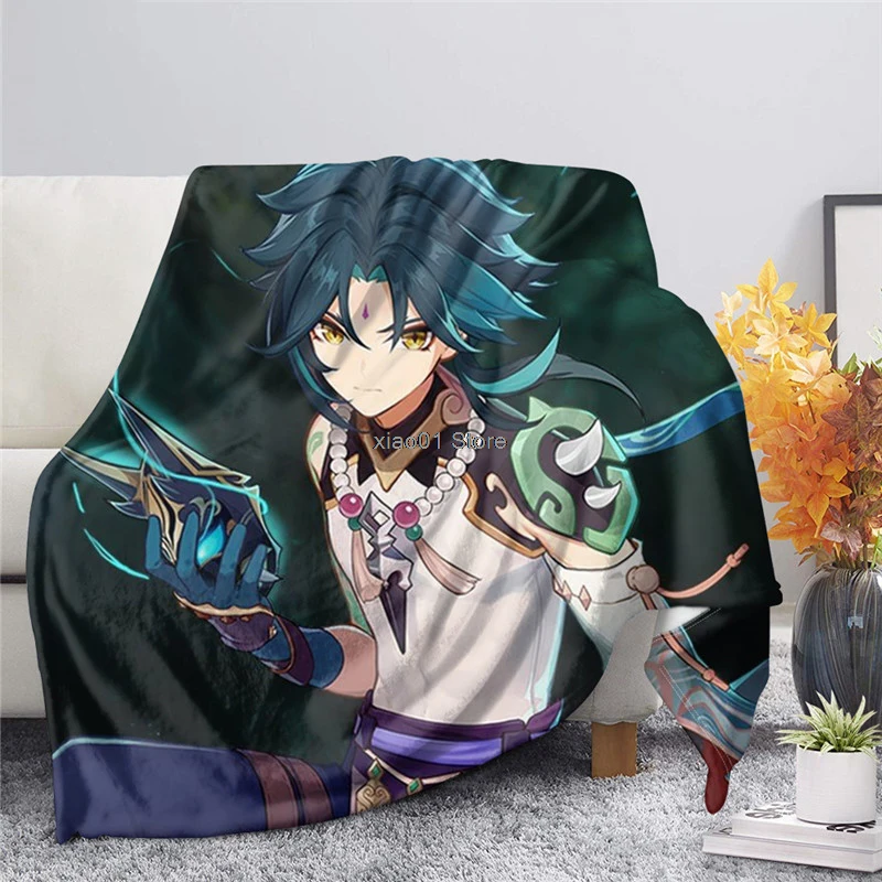 Одеяло аниме с принтом Genshin, модное тонкое одеяло для взрослых, для дома и офиса, моющееся одеяло, повседневное детское одеяло из шерпы