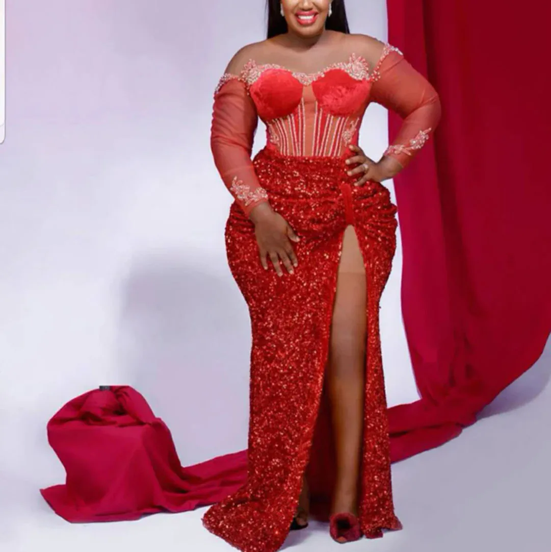 Длинные африканские Блестящие Свадебные платья с блестками и высоким разрезом, Официальные Вечерние платья Aso Ebi, платья-русалки для выпускного вечера, 2021