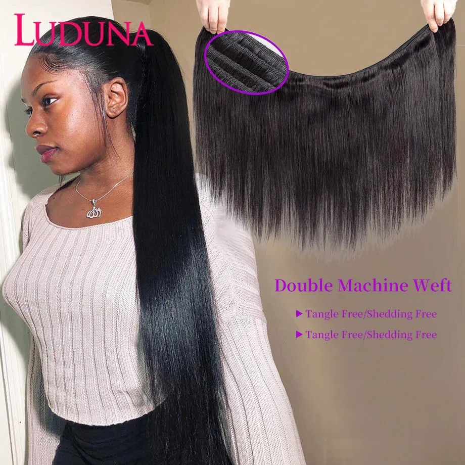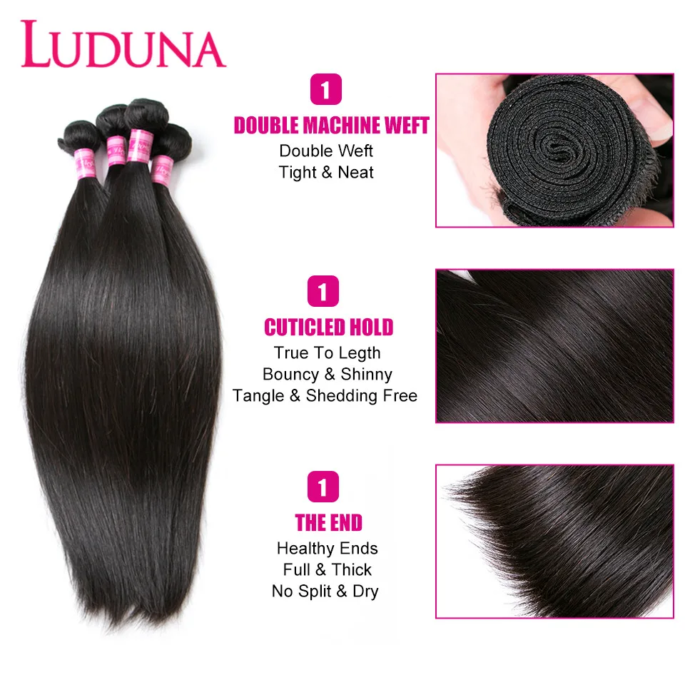 Бразильские пряди волос Luduna с застежкой, прямые 3 пряди с застежкой, 4*4 Человеческие волосы Remy, пряди с застежкой и двойным переплетением