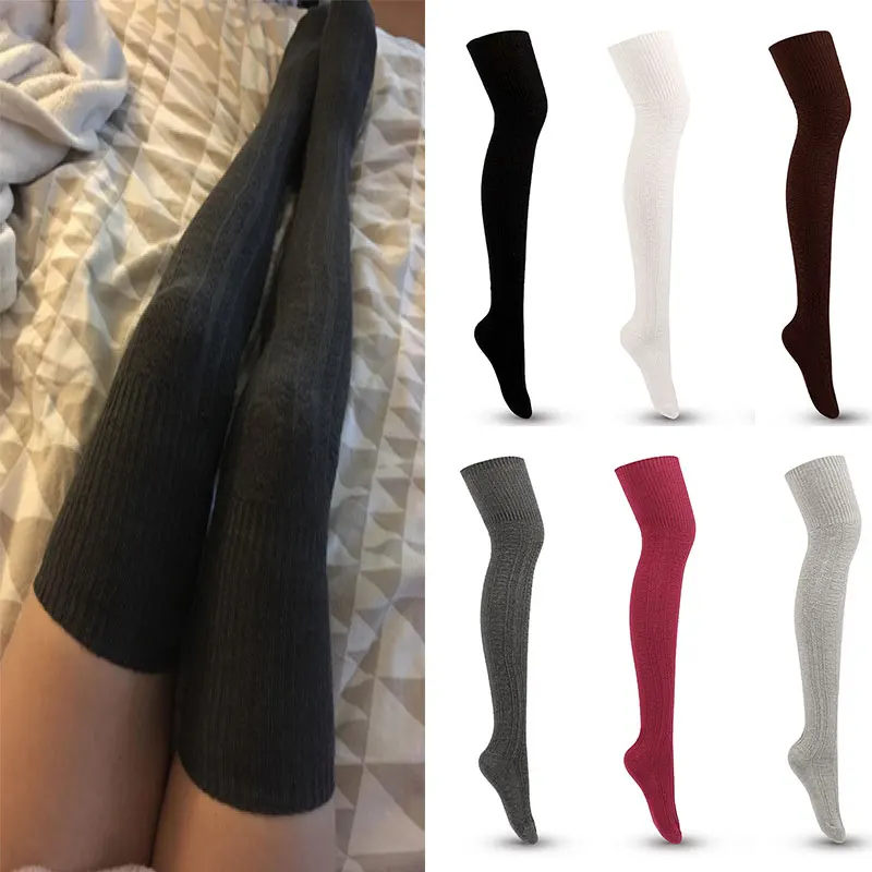 Однотонные высокие носки, 1 пара, хлопковые универсальные вязаные теплые женские длинные чулки, японские гольфы, теплые гольфы