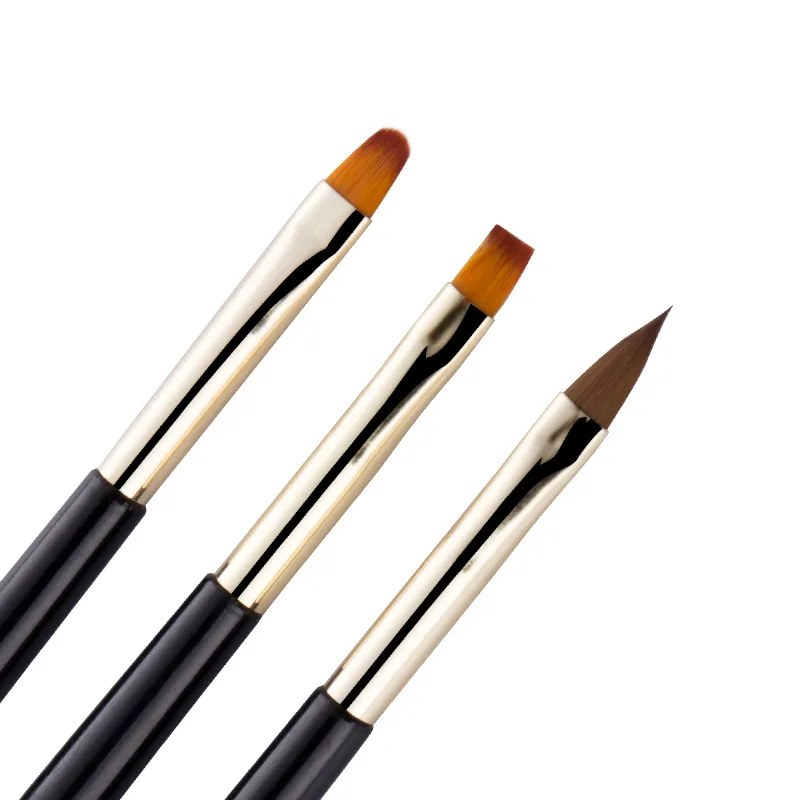 Набор двусторонних кистей для ногтей, 3 размера, золотая, черная ру...