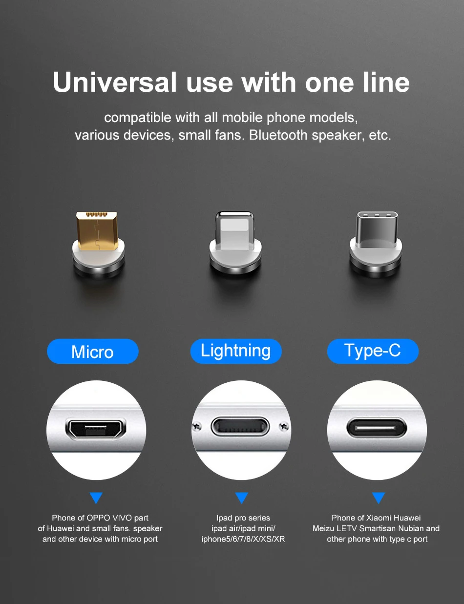 Feature 4360 Degree Rotation Magnetic USB Charging Cable
