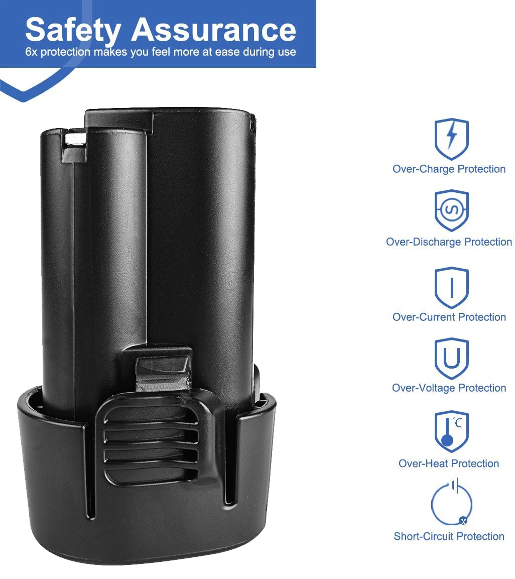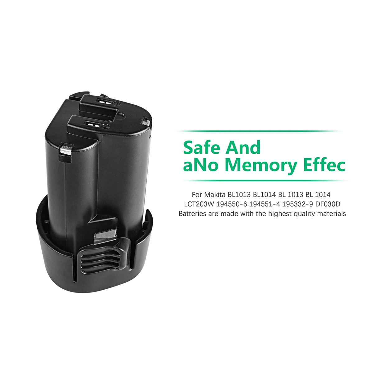 Эта замена батареи MAKITA BL1013 была изготовлена с высококачественными компонентами. Он соответствует точной спецификации оригинального производителя, и батарея гарантирована от всех производственных дефектов.Для всех батареи електричюеского инструмента запасом 0,2 V разница в напряжения безопасен для здоровья. Если Емкость (Ah) аккумулятора выше, чем емкость оригинального аккумулятора, это позволит продлить срок службы.В рамках нашей процедуры контроля качества ISO 9001 испытания качества часто проводятся на всех наших продуктах.