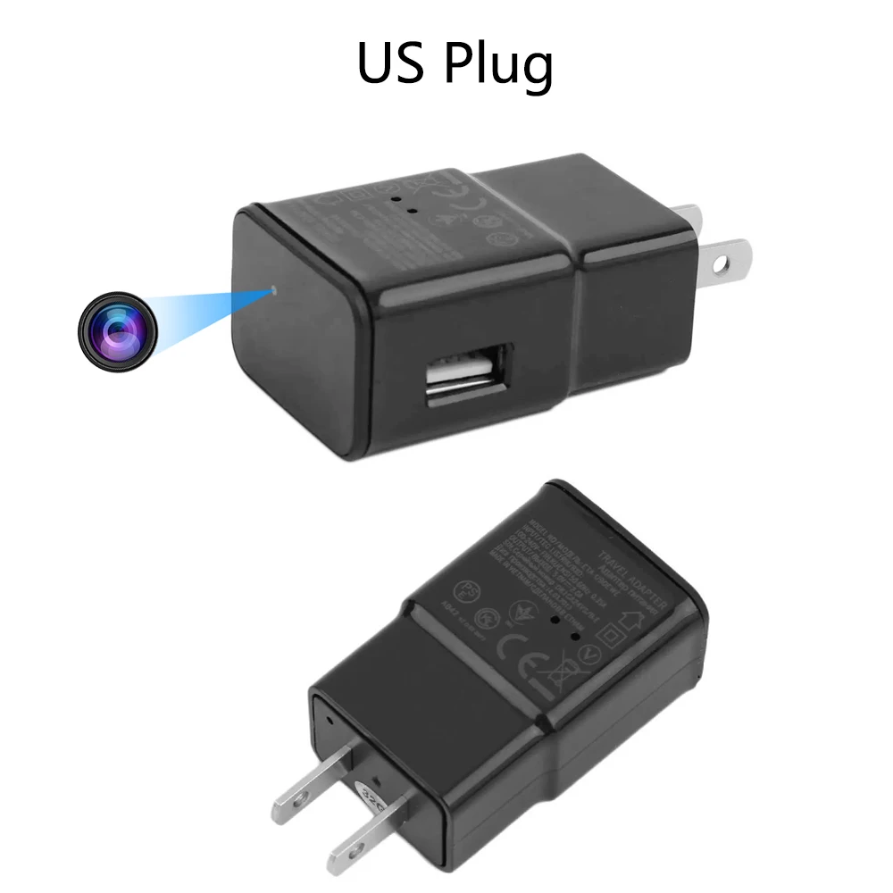 Адаптер позволяет заряжать телефон, настенное зарядное устройство делает камеру безопасности совершенно незаметной.