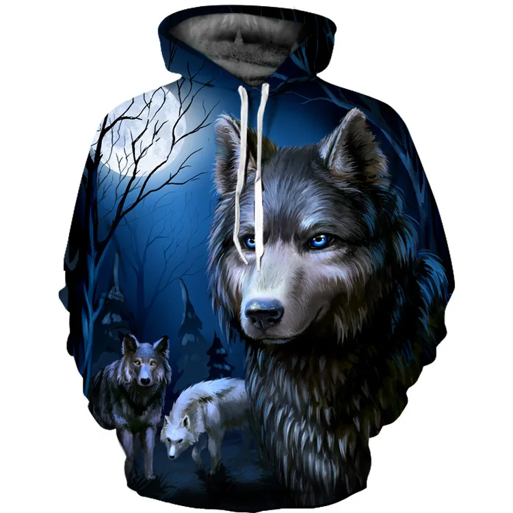 Модные мужские толстовки с капюшоном с 3D принтом волка мужскиеженс...