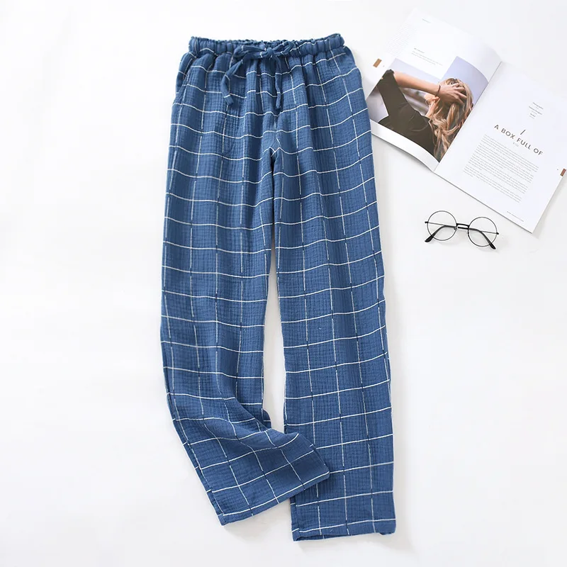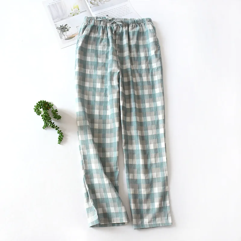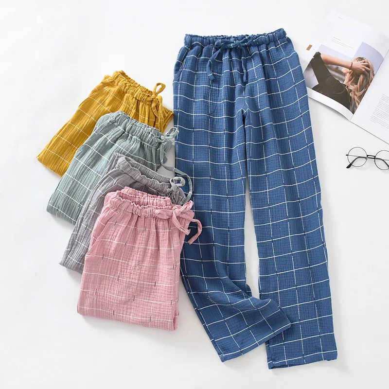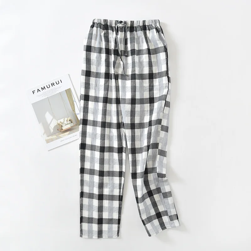 Японские клетчатые парные пижамные брюки для мужчин и женщин весна-осень хлопковые марлевые брюки летние тонкие свободные домашние брюки