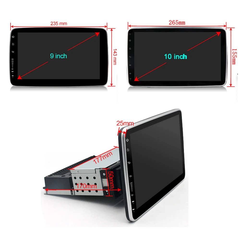Автомагнитола на Android с углом поворота 360 , Универсальная автомобильная магнитола 910 дюйма, автомагнитола 1 DIN, стерео, GPS, Wi-Fi, видеоплеер со съемным экраном