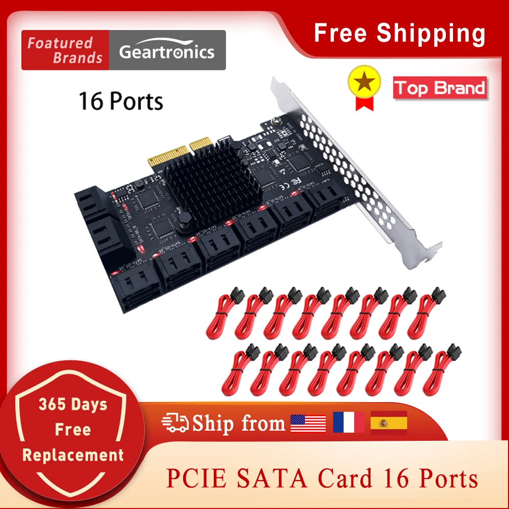 Карта расширения для контроллера SATA PCIE, 16 портов, 6 ГБ, SATA 3...