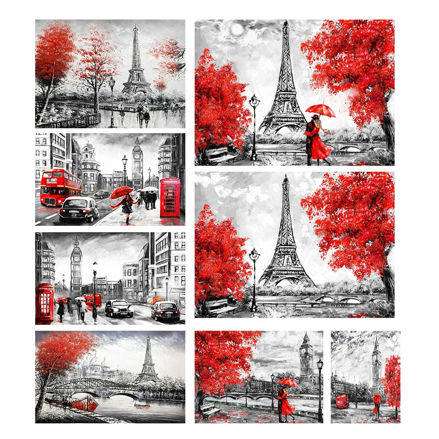 Алмазная вышивка, вышивка крестиком, башня Парижа, алмазная живопись, красный пейзаж, любовник 5D, сделай сам, полная мозаика, поделки для пар