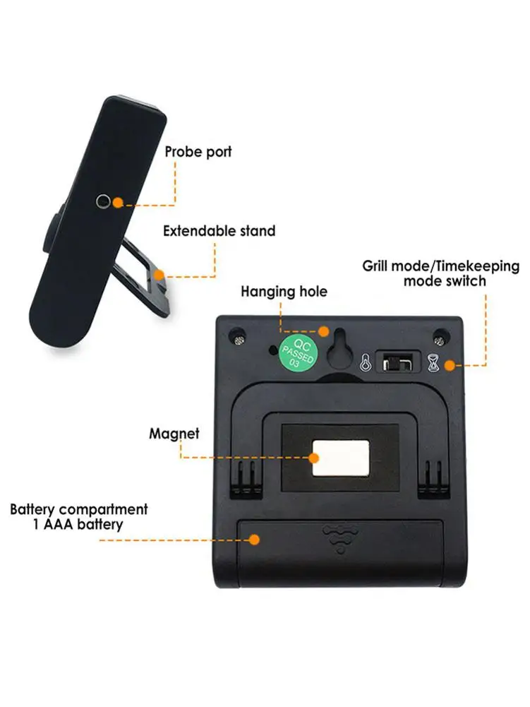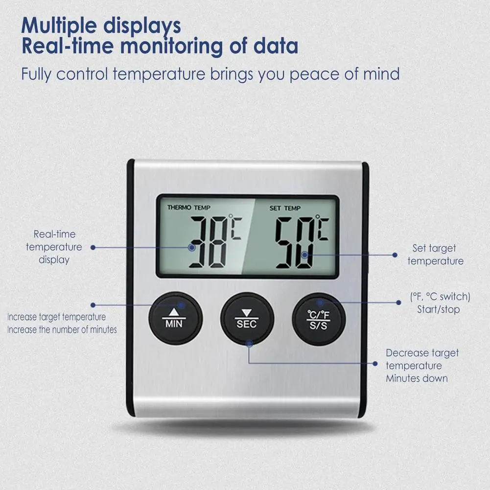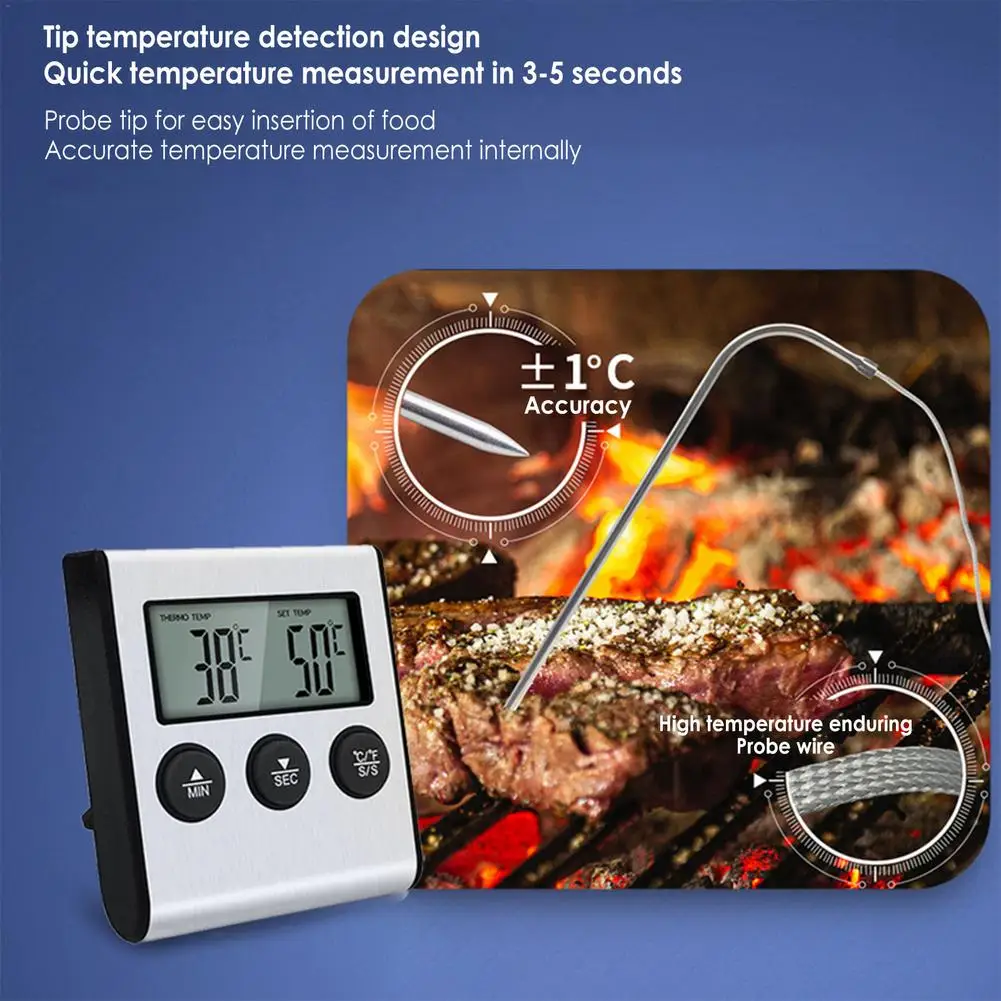 Цифровой термометр для барбекю и духовки, кухонный измеритель температуры еды для мяса, гриля, с таймером и щупом из нержавеющей стали, 1 шт.